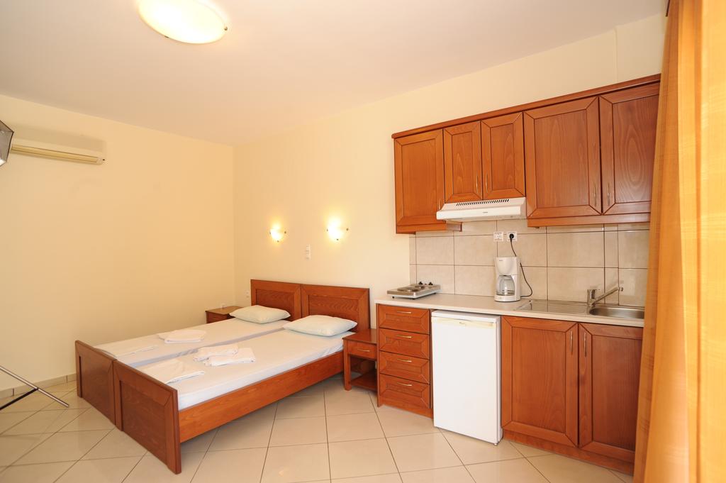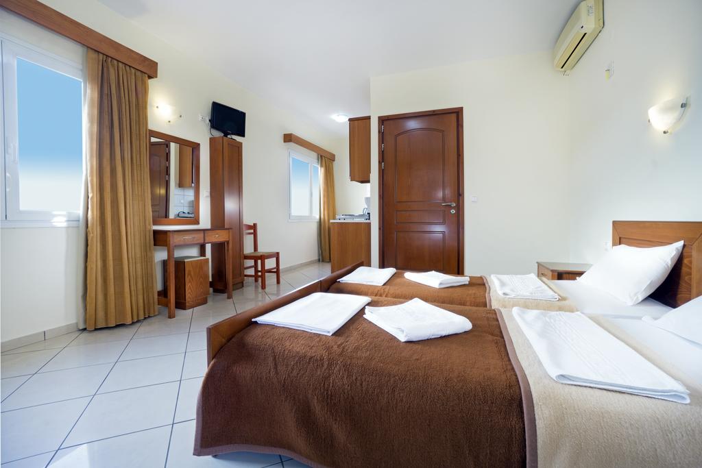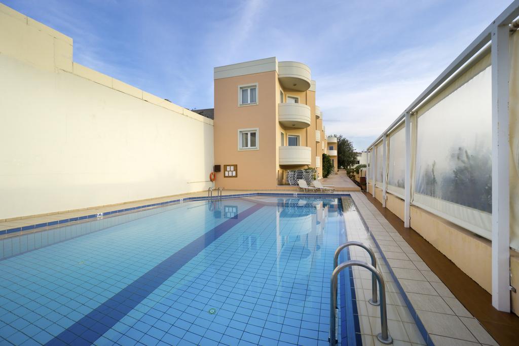 Situated right on the beach of Agia Marina in Chania, Georgina Apartments features an outdoor pool with separate children’s section. Set amidst a palm-tree garden, it offers self-catered accommodation with a balcony and free Wi-Fi. A flat-screen TV with satellite channels and a safe are features found in all air-conditioned studios and apartments. Each contains a kitchenette with a fridge, cooking range, and coffee machine, and is decorated in shades of gray and blue. Certain types of accommodation have views of the Cretan Sea. Within easy walking distance of the hotel are a number of bars, restaurants, and supermarkets for guests to choose from. Georgina Apartments is situated 17 miles from Souda Port and 9 km from the picturesque Chania Town. It is 25 kilometers to Chania International Airport. Agia Marina is the perfect place for solo and family vacations in Crete, offering all you need. Click the Book Now! button and compare rates offered by various online booking services.