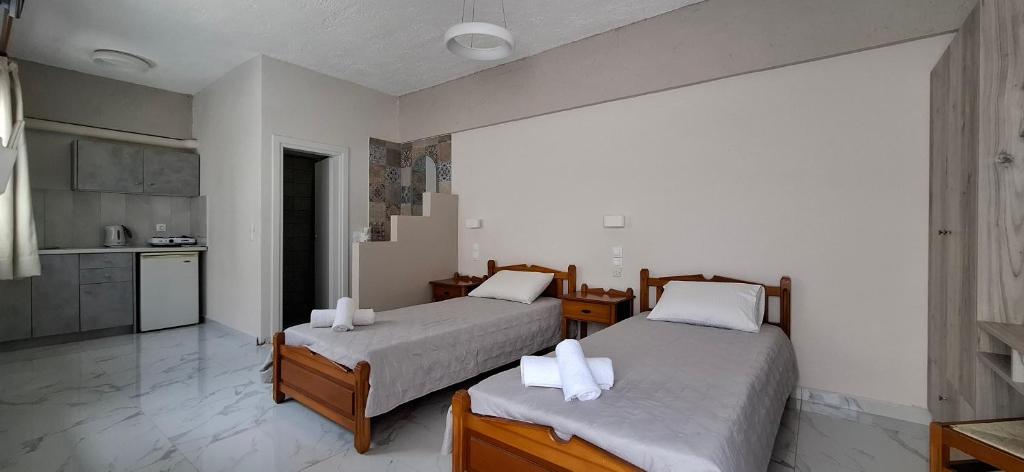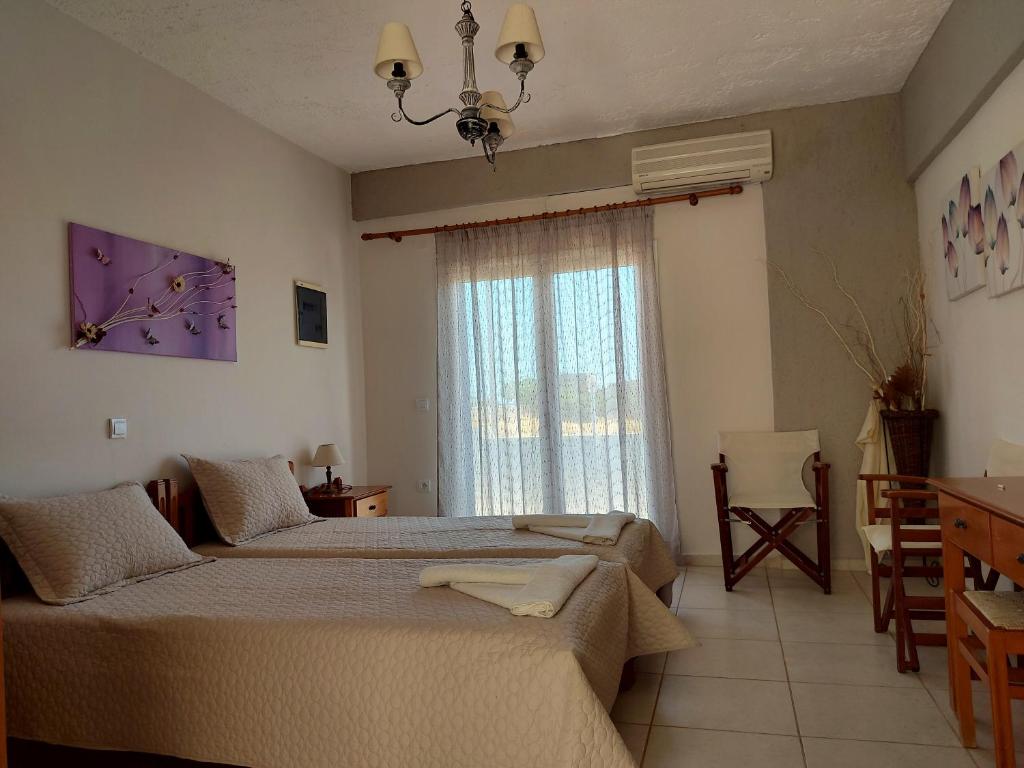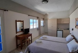 One of the most stunning beaches on Kythira Island, Agia Pelagia, is home to Pelagia Beach Studios, which is situated in a wonderful, peaceful area. From the apartments, you can walk 150 meters straight to the beach. The complex is made up of ten large studios, most of which have views of the sea and Agia Pelagia's charming harbor, creating a magical frame with a view of the Aegean Sea. They offer air-conditioned studios with kitchenettes, balconies, and private bathrooms. Each room includes a tea and coffee maker, hairdryer, Wi-Fi, and dining table. You may find everything you need for souvenirs and gifts in the property's store, which is only 200 meters away in the center of Agia Pelagia. Venetian Castle, Monastery of Panagia Myrtidiotissa, and Loutro tis Afroditis are some of the nearby tourist attractions. Pelagia Beach Studios is thirteen kilometers from Kythira Island National Airport.