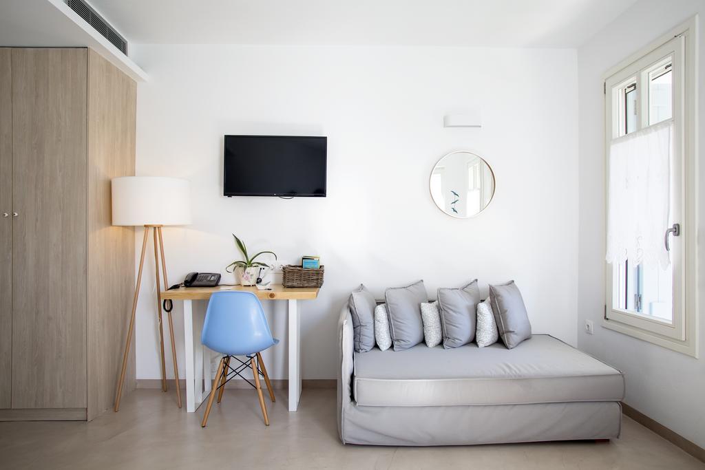Two buildings make up the complex known as Anemomiloi Andros Studios. Nestled in Chora or Town on the magnificent island of Andros, this property offers panoramic views, Cycladic architecture, great hospitality, and an amazing position. In the brand new main apartment building, there are 13 modern-designed apartments: 8 Deluxe Doubles and 5 Superiors, ideal for families or groups of friends. Both buildings have outstanding views of the sea and the green valleys. The Anemomiloi Studios provide air conditioning and a kitchenette with a fridge, stovetop, and utensils. Each has a couch and an LCD TV. Traditional products might be offered for breakfast at a nearby property's pool area. You can use the bar for beverages and cocktails as well as the pool for relaxing. Andros Town features charming squares with stores and bars, as well as neoclassical buildings. It takes ten minutes to walk to the Museum of Contemporary Art and the Gavrio Port is around 35 kilometers away. Every Anemomiloi Studio has all the amenities required and a list of places to visit so that guests may enjoy the most restful vacation possible on Greece's Andros Island.