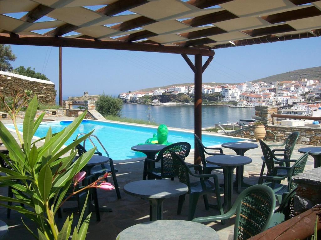 The stunning capital of Andros Island is home to Vassiliki Studios. The building's meticulous design and refinement have produced the exceptional services. Every requirement will be satisfied by the 14 A-class apartments that are provided. Despite being extremely close to Chora or Andros Town, Vassiliki Studios is located in a peaceful, picturesque area. Every air-conditioned unit at Vassiliki has a kitchenette with a microwave, refrigerator, and cooking hobs. Each has a satellite TV with a flat screen. There is a shower and a hair dryer in the private bathroom. The balconies offer breathtaking views of the Aegean and an outdoor swimming pool for your enjoyment.
