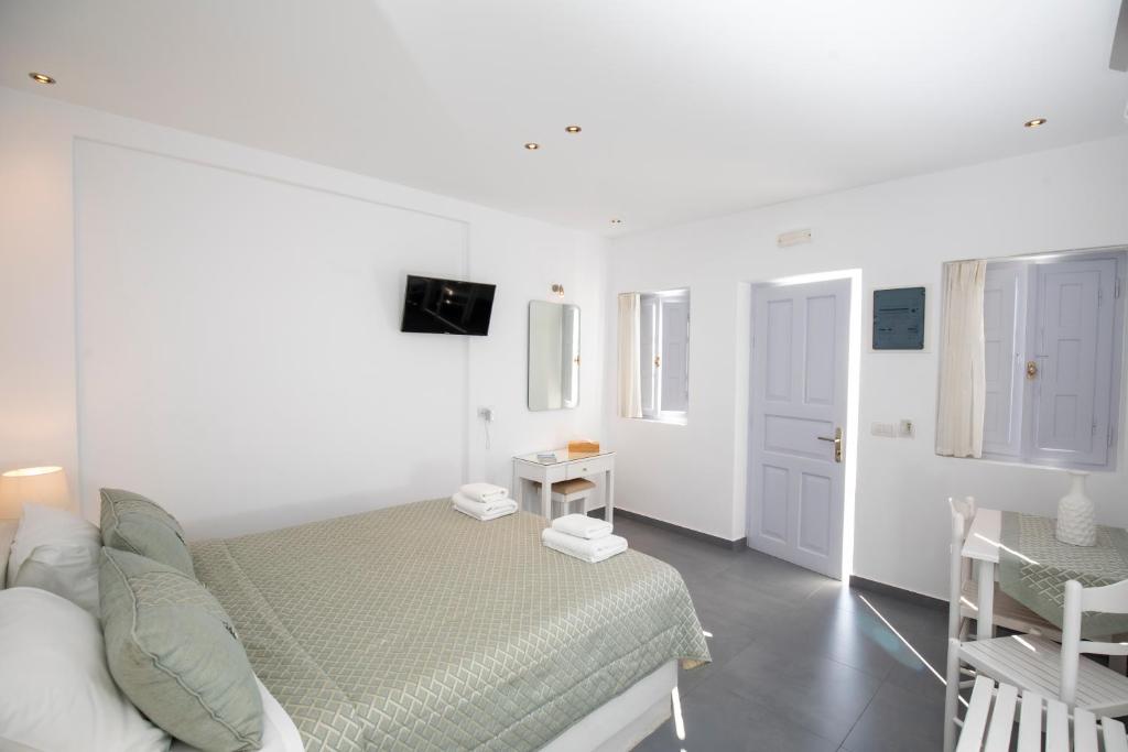 Things to know before booking Santorini View Studios is that the island of Nea Kameni, an active volcano, dominates the breathtaking views of the entire caldera that can be had from the cliffs of Firostefani. In the evening, one may take in the stunning sunset and the spectacular view of Fira itself. There are many restaurants and cafés in the the village with terraces perched on the cliff where you may lose yourself in a thousand-hued sunset. The Agios Nikolas Monastery, one of the most well-known views of Santorini, is located halfway between the villages of Firostefani and Imerovigli. The rock of Skaros, a historically significant area of the island that was home to a castle until the 17th century A.C., is another focal point of the vistas.