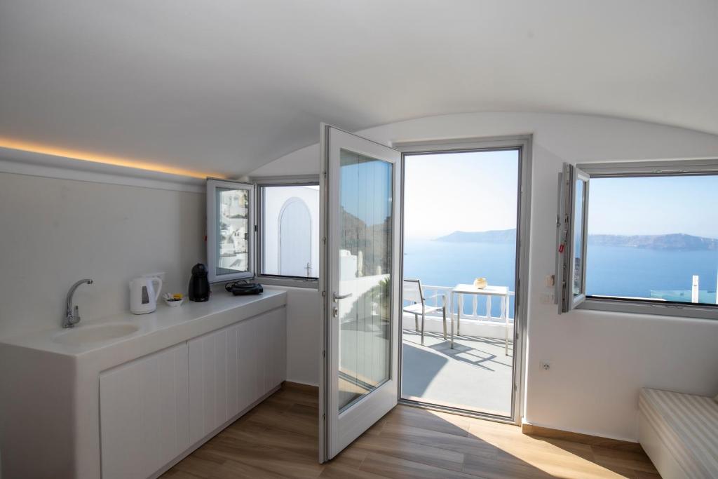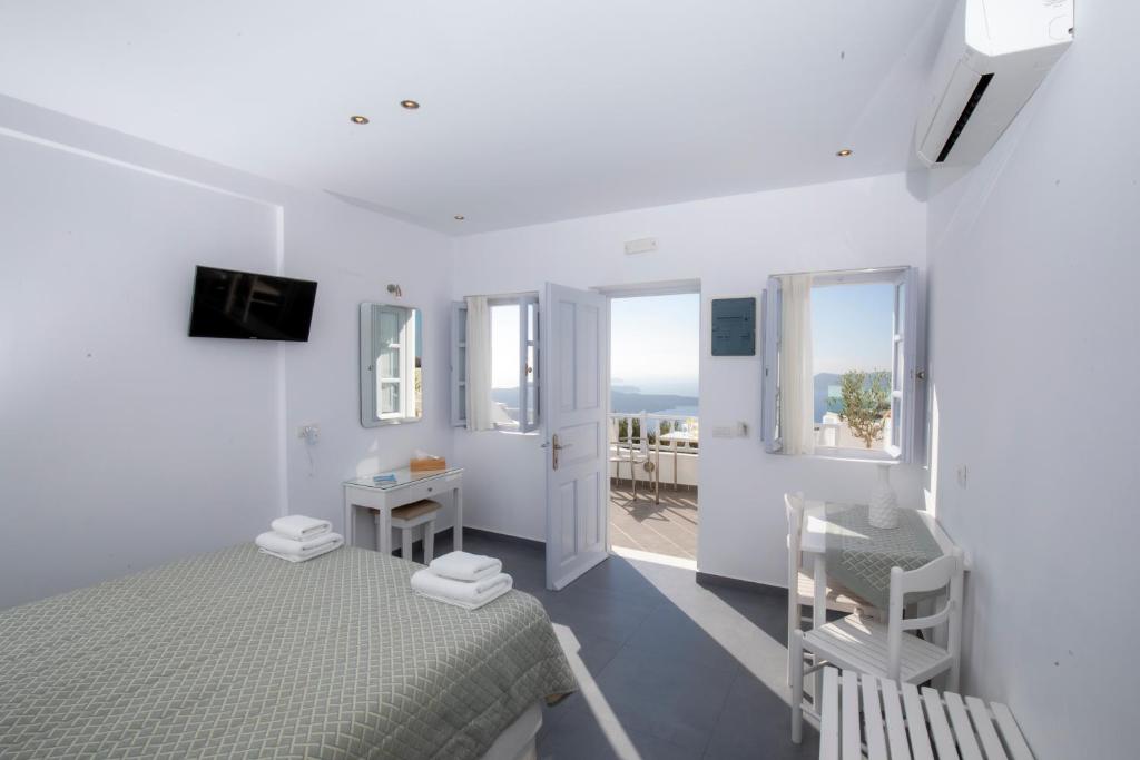 The Santorini View Studios on Santorini Island is ideal for large groups of travelers. The distance between this accommodation in Firostefani and the city centre is 5 kilometres. You are welcome to stroll and discover the nearby attractions. It has a private patio and a fully equipped kitchen, which will make your vacation to Santorini, Greece, memorable. Greek hospitality at its finest can be found at Santorini View Studios Firostefani, where the owners and their family are eager to welcome you. The view of the volcano, caldera, and famous sunset from the balcony is the most amazing feature of Santorini View! For this reason, the place of accommodation is referred to as such.