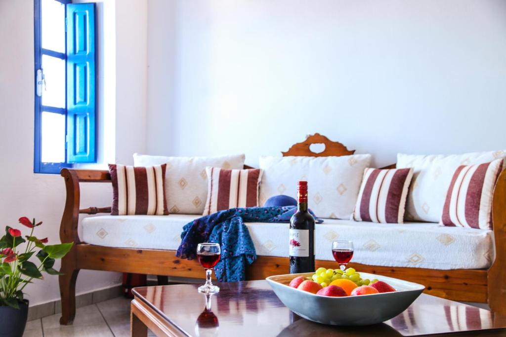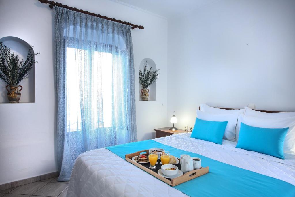 All of the apartments are perfect for families and couples alike because they are independent, self-contained, and can house up to 4 people. A romantic and enjoyable stay is guaranteed by the ambiance created by the Cycladic building, classic furnishings, and modest yet tasteful design. The apartments come with airconditioning, bathroom with amenities, hairdryer, refrigerator, kettle, TV, Wifi and balcony. Wifi access is available in all areas and parking is free for your private or rental car.