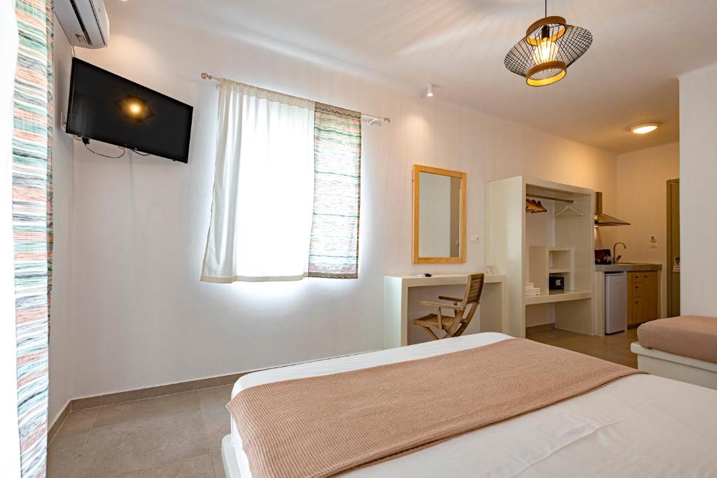 Alisea Resort consists of double rooms, which can accommodate a third person. Enjoy breathtaking views of the azure Aegean Sea from the comfort of your private balcony. From Polyaigos to Apollonia Mylos, the panoramic vistas will leave you in awe. The bathrooms and private verandas, complete with wooden pergolas, showcase the distinctive Cycladic style. Room amenities come with a fully equipped kitchen, air conditioning, TV, private bathroom and hairdryer. There is free parking for your rental car and wifi access is covered in all areas. Experience the perfect harmony of luxury and tranquility at the Alisea Resort in Kimolos.