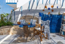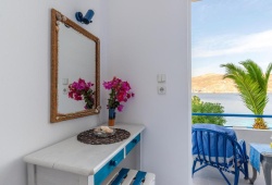 Antoniadi, which is situated on the east side of Livadia Bay in Tilos, is made up of ten large, light-filled rooms spread across two floors, with a large garden and terrace beneath the units. The entire property is two floors above the main road. From every location on the resort, guests may enjoy the breathtaking view of the sea and the entire Livadia Bay. Every room has a large balcony with a view of the sea. Amenities include air-conditioning, a private bathroom with a walk-in shower, a kitchenette, a dining table, and outdoor furniture, ensuring a comfortable stay. There is free Wifi throughout the area. Just below is a small beach with pebbles and pristine water that's perfect for snorkeling or relaxing in the summer sun. Antoniadi Rooms in Tilos is the ideal location for restful vacations, peaceful settings, and first-rate service.
