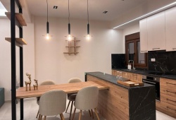 Abete Luxury Apartments is a brand-new, contemporary apartment building in Metsovo. It is on the main road and just 500 meters from the town square. It provides large apartments with family areas and two bedrooms. Free WiFi, free on-site private parking, and a terrace are features of every apartment. A fully furnished kitchen with an electric kettle, hob, oven, and refrigerator is available to guests. A dining table, a seating space, and streaming services are further features.