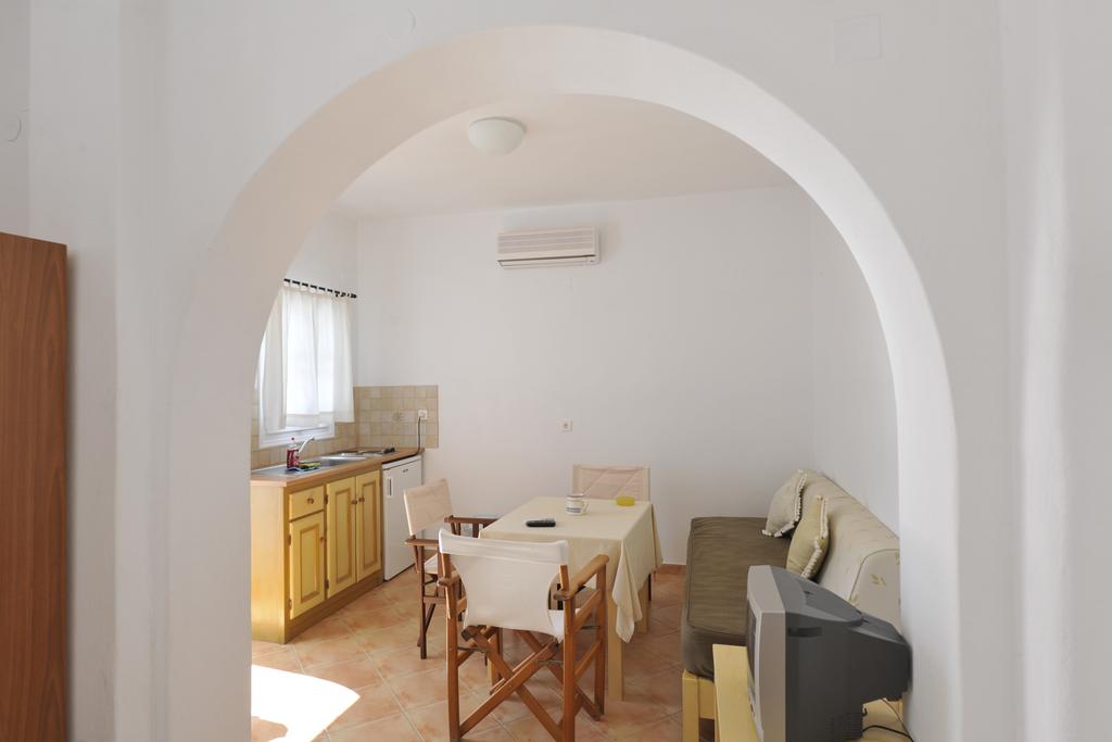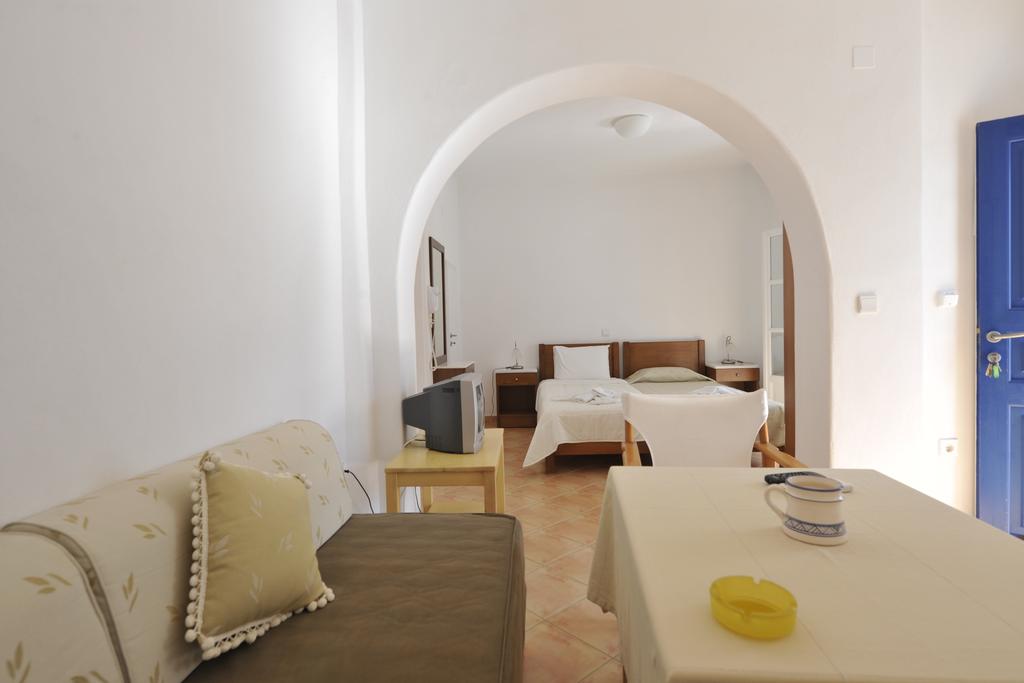 Janos Studios are located at the heart of Naoussa village in Paros in about five minutes on foot. They are spacious and cleverly built to provide visitors solitude. If you prefer peace, rocky surroundings, and deep seas, you may swim directly in front of the studios. Janos is a compact building with six contemporary studios and apartments. Along with a hair dryer, TV, air conditioning, double-glazed windows, a fully functional kitchen, a small dining area, and a shower bathroom, they also have a terrace or veranda with views of the village or the sea. Parking is available in plenty of spaces. Every day cleaning is provided. Janos offers studios and apartments that may house two to five people. There are also some mini-markets near the studios for your convenience in the Naoussa area. The area of Agioi Anargiri is very quiet and considered to be one of the prettiest spots in the village of Naoussa. Janos Studios is the ideal accommodation option if you want to go on holiday to Paros.