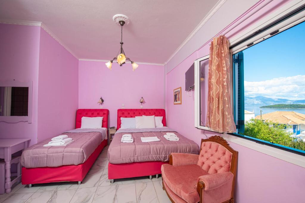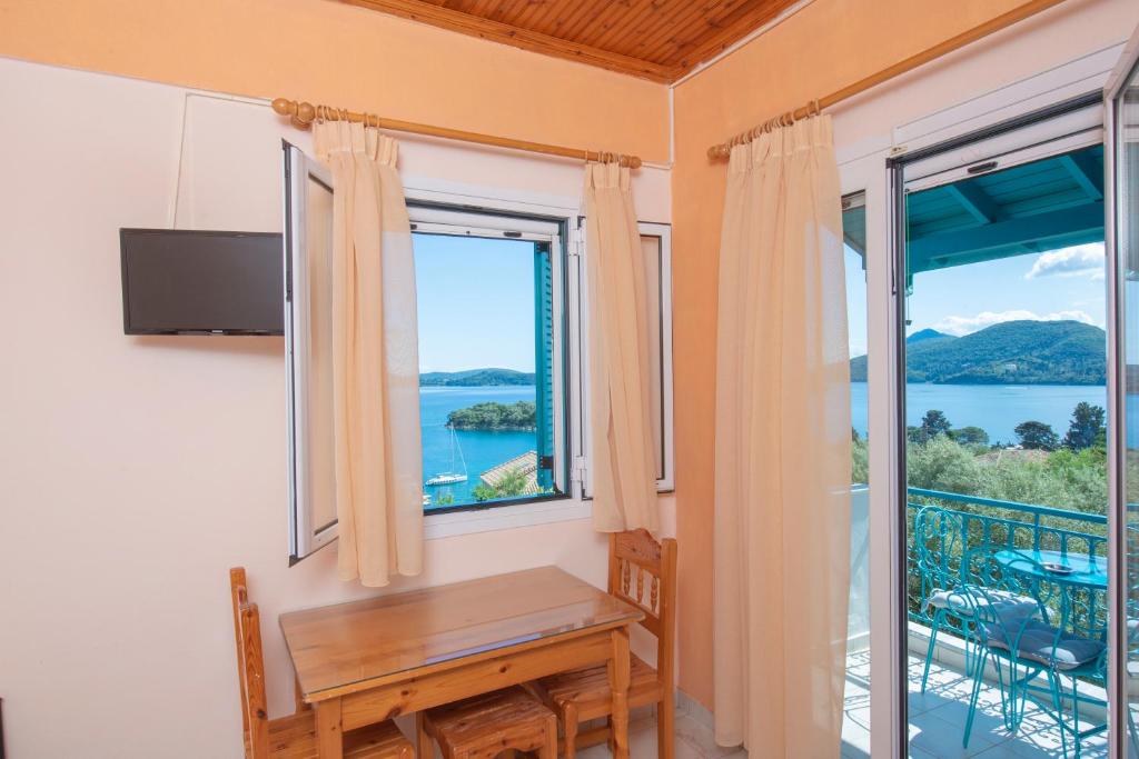 Bella-Vista is located in Perigiali, Lefkada, 150 m from the sea, 1 km from the cosmopolitan Nidri, and 800 m from the crystal-clear Passa beach, 15 minutes from the town of Lefkada with a view of the Prinkiponissia islands. It offers studios and apartments of 30m² or 32m² with fully equipped kitchens, suitable for 2 or 3 people. A children's playground, an outdoor seating area, bike parking, and free off-site private parking are among the other features. There are cafes, a mini market, and a pharmacy very close by. 200 meters away, there is a bakery, and for anything else you might need, you are just 5 minutes away from the center of Nidri. Make the stunning Greek island of Lefkada your next destination, and select Bella Vista Apartments for a pleasant place to stay.