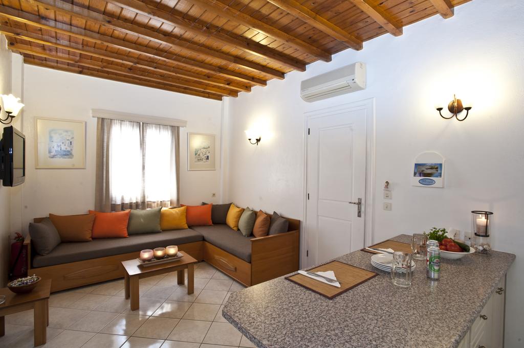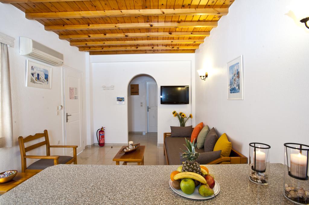 Filoxenia Apartments is a family-run complex of 10 one-bedroom apartments located 100 meters from Ornos beach. The apartments are spacious, recently renovated and well-maintained. They include a fully-equipped kitchen with the necessary utensils, air conditioning in both bedroom and living room, private bathroom with hairdryer and wifi connection. The Filoxenia Apartments are located in Ornos, 2.5 kilometers from Mykonos Town and 100 meters from the beach. Numerous fishing boats moored in the charming town of Ornos. The pristine, sandy beach near the bay's entrance is extremely well shielded from the summer breezes coming from the north.