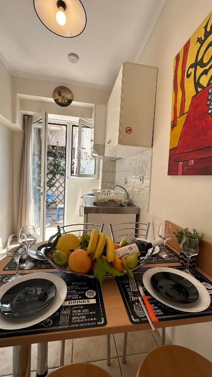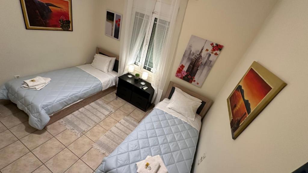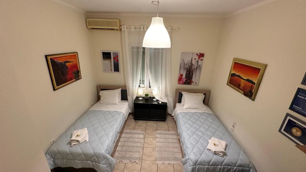 With all the conveniences of a contemporary house, Patras Center Apartment is a stunning rental unit. It is tastefully furnished to give visitors a cozy, private atmosphere and to ensure their comfort. There are two single beds in the bedroom and a sofa that can be made into a bed in the open-plan kitchen-living area. In addition to free Wi-Fi, the residence offers shampoos, towels, and bed linens. There are also smoke detectors, air conditioning, a sound system, and a flat-screen TV in the room. Our guests can reach the little paved courtyard at the back of the apartment through the kitchen door. The Patras Centre Apartment is situated in a quiet area near the port, the Hospital of Agios Andreas, the Pampeloponnisiako Stadium, the Pepanos swimming pool, the Olympion Therapeutrio, and the center of Patras. There is parking on the grounds and outside. The apartment is conveniently located near the municipal bus station, which makes frequent trips to and from the center. It takes about fifteen minutes to walk to the shopping center. A well-known supermarket is 0.5 km away, while a mini market is less than 50 m away.