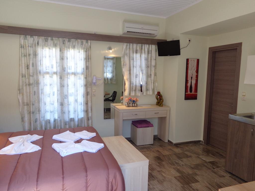 Niki Studios is a waterfront property with breathtaking views of the Aegean Sea, situated in Petra, Lesvos. You may choose to relax in the communal sauna or jacuzzi, in the garden, or by the pool when staying in one of the brand-new, luxury studios. The closest organized beach is only 200 meters away, and the breathtaking sea view makes this the perfect place to call home for the summer. Delightful breakfast is provided each morning and is included by the cost of accommodation. Every Niki studio has a refrigerator, free WiFi, air conditioning, and 32-inch TVs. The village market in Petra, which has restaurants, cafés, a variety of stores, pharmacies, a doctor's office, ATMs, etc., a five minutes' walk away. Petra has one of the best sandy beaches of Lesvos. High time and memorable experiences are guaranteed at Niki Studios. Book Now! Enjoy your holidays in Lesvos!