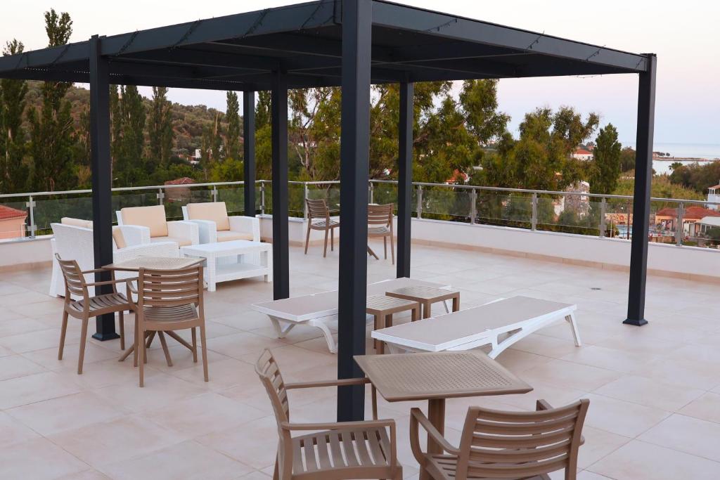 Ocean View Studios is located in the charming and historical area of Plomari, just 80 meters from the well-known Agios Isidiros Blue Flag Beach. There is a special rooftop where visitors can have sundowners and take in Lesvos' breathtaking sunsets. Newly remodeled apartments come with individual bathrooms, balconies, and air conditioning. Every room has a work desk, a kitchenette, and soundproofing to provide a comfortable stay. Private check-in and check-out services, WiFi throughout the building, and an outdoor sitting area are all included.