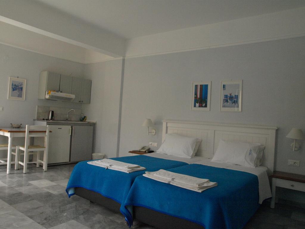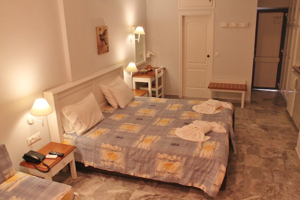 On the marvellous beach of Sougia in Crete, on the southern coast of Chania, with its unique multicolored pebbles, you will find the hotel Santa Irene. There are fifteen cozy studios and two-room apartments available for rent. A kitchenette with all the appliances needed for cooking is included in both types of rooms. This includes a refrigerator, kettle, phone, air conditioning, hair dryer, satellite TV, safebox, and hot and cold water in the bathroom. Internet connectivity via free Wi-Fi is available everywhere.