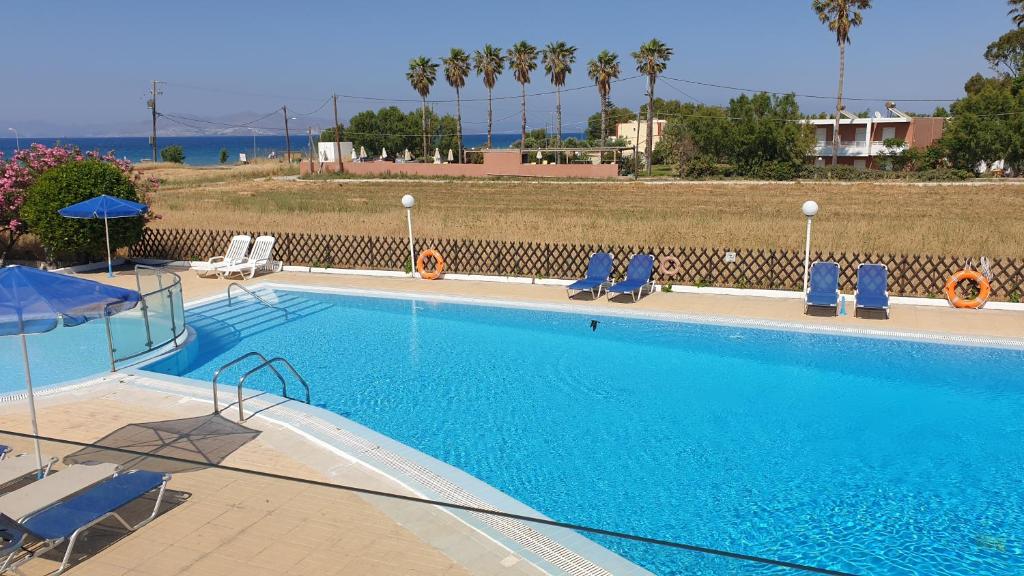 Every visitor at Miros hotel has access to a sunny pool with snack bar where they may swim, unwind on our sun loungers, and have a small meal or drink. Every visitor is welcome to use the BBQ facilities in the palm tree garden and enjoy their meal outside in the open air. Miros Hotel Apartments are located 800 meters from Tigaki Village's center, which has a large number of restaurants, bars, and shops for visitors. Kos International Airport is located 14 kilometers from Kos Town and Port, which are 9 km distant.