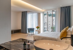 The Pinacota Suites are ideally located in one of Athens' most accessible areas. Modern appliances, a distinctive architectural style, warm, inviting colors, a luxurious business setting that respects the environment, and excellent service in a tranquil setting. The hotel has seven luxurious accommodations that can be booked separately or all at once. Each unit has a burner, refrigerator, coffee maker, kettle, and kitchenware. The apartments at the aparthotel come with air conditioning, a flat-screen TV, and a private bathroom with a hair dryer and shower. Some of the rooms also have a terrace. There is a small gym for you to work out. Only two kilometers from the enticing stores, galleries, museums, and restaurants of Kolonaki. Discover Pinacota Suites in the center of the city, which is the ideal location to take advantage of everything Athens has to offer. The visitors can quickly reach their desired destination with assistance and unhindered access to the public transportation system (bus, cab, metro, rail, and tram).