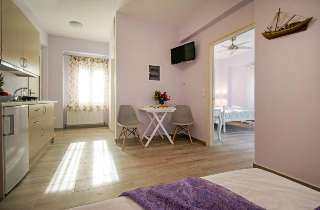 Located in the eastern part of the island of Kythira, Avlemonas Bay Sea Houses offers immediate beachfront access and breathtaking views of the sea. The two homes, which can house two to four people, are tastefully decorated with all the modern comforts. The apartment has a fully functional kitchenette, a private bathroom, and a terrace. A TV, free WiFi, and air conditioning are further features. The open spaces, which provide tranquility and relaxation and are ideal for a comfortable stay, are surrounded by stunning scenery and the azure Aegean Sea. Visiting this complex will undoubtedly satisfy travelers' needs. Avlemonas is a charming town with cafes, shops, and tavernas in the middle of the bay. Kythira Island National Airport is 10 km from the Avlemonas Bay Sea Houses.