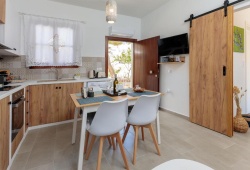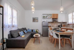 On the beautiful island of Halki, the Bluebell house is only 0.2 km from the port (3 minutes' walk) and 0.5 km (6 minutes' walk) from Pondamos Beach. The house has a bathroom, an open-plan kitchen, a dining area, a living room, and one bedroom. Guests can unwind or eat outside in the front and backyards, which are furnished with outdoor furniture. The guest bathroom has towels, a hair dryer, and a walk-in shower. The well-equipped kitchen (complete with an electric cooker, oven, four cooking zones, refrigerator, kettle, toaster, and coffee maker with milk frother), dining room, and living area make up the open-plan space. The guesthouse has air conditioners, smart flat-screen TVs, and complimentary Wi-Fi. The Bluebell House is the ideal option if you're looking for a quiet spot to stay on the isolated island of Halki.