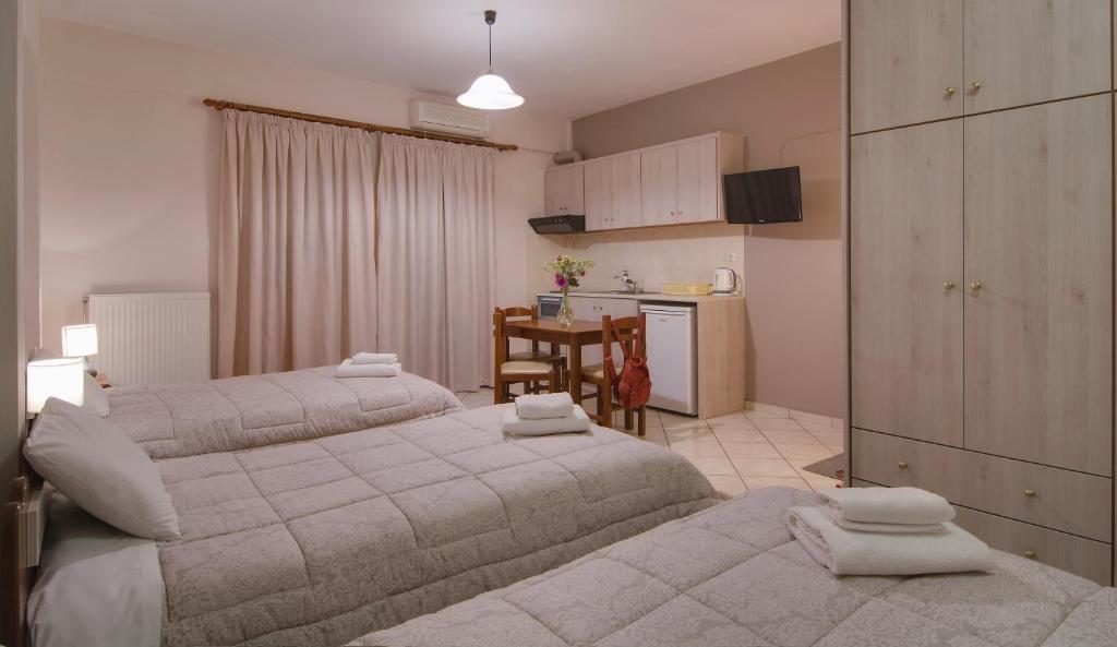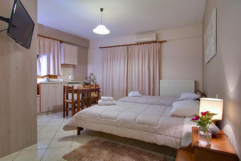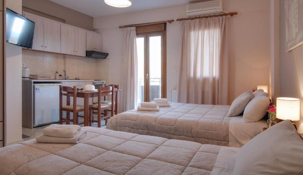In the beautiful Perama of Ioannina, near the famous Cave, you will find the Tsironis Guesthouse, a newly built complex with a wonderful view of Lake Pamvotida or Mount Mitsikeli. It will keep you company no matter the season you visit and will captivate you with the colors of nature that add a pleasant touch to the area. The house has air conditioning, a TV, a private bathroom with a shower and slippers, and a balcony. Every unit in the guest home has heating capabilities and is soundproof. The Tsironis guest house offers free WiFi and on-site parking. You are welcome to come to a well-kept building, embraced by stone walls, crafted with care, that awaits you to experience the most carefree and comfortable vacation in Ioannina.