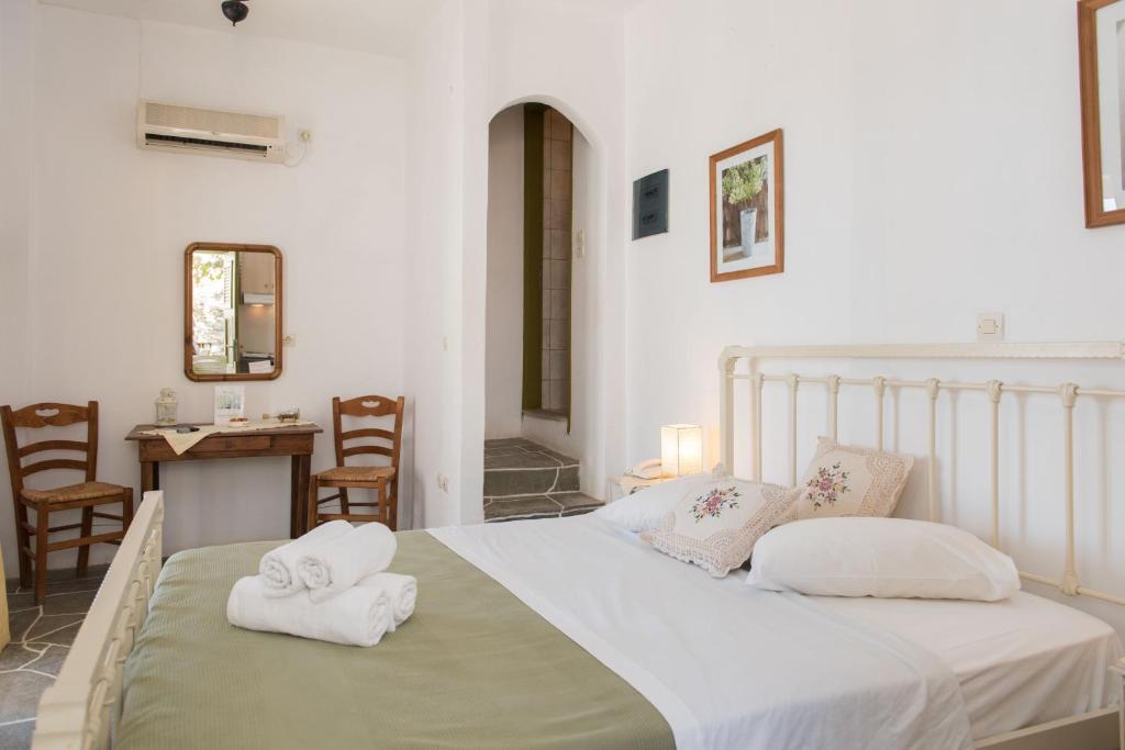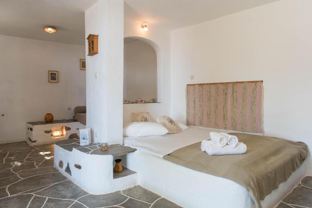 For a wonderful Sifnos Island trip, the accommodations at Agnanti Traditional House, which is situated in Kastro village, are quite delightful. Comfort, traditional design, hotel amenities, and a breathtaking view are all provided by this guesthouse. The accommodations themselves exhibit the traditional architectural style, with their standard interior décor, classic yet elegant features, tiled flooring, and double beds, some of which are made of stone. There is also a spacious bathroom with a cabin shower, as well as a private veranda. Along with other amenities, the conventional style offers free Wi-Fi, a telephone line, a refrigerator, a TV, a hair dryer, and air conditioning. The convenience of parking within the business's boundaries and the location's easy accessibility both contribute to the comfort.