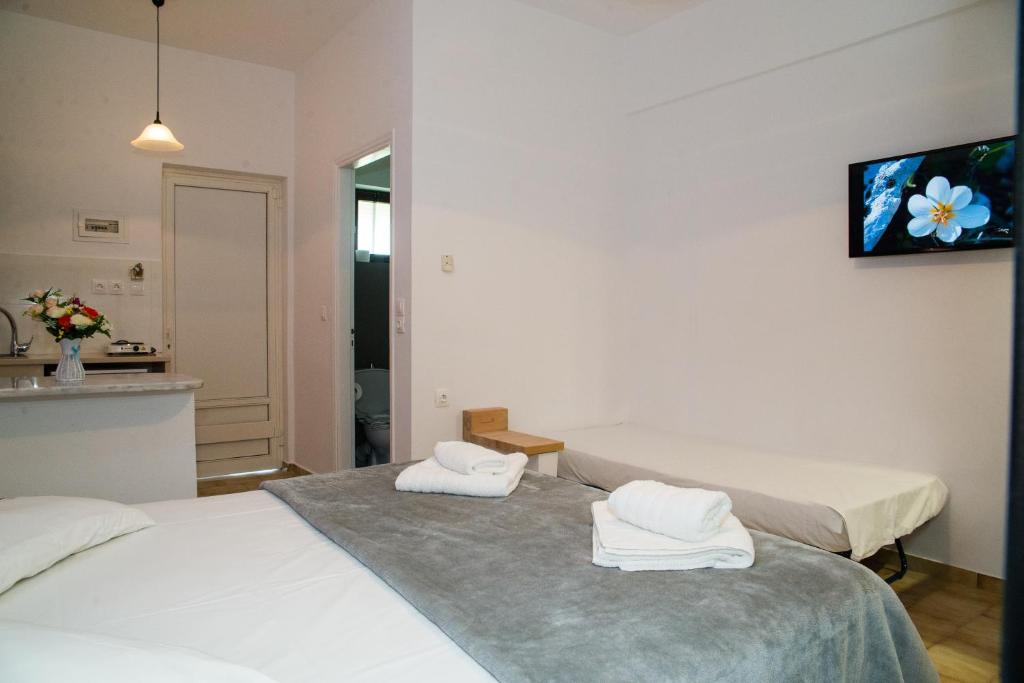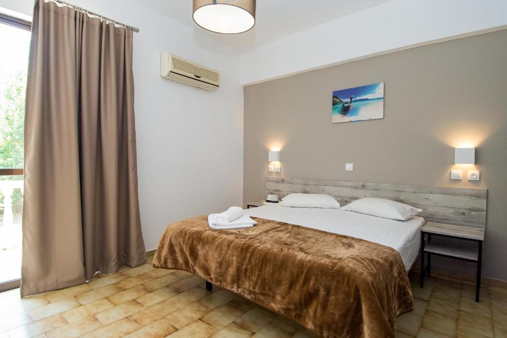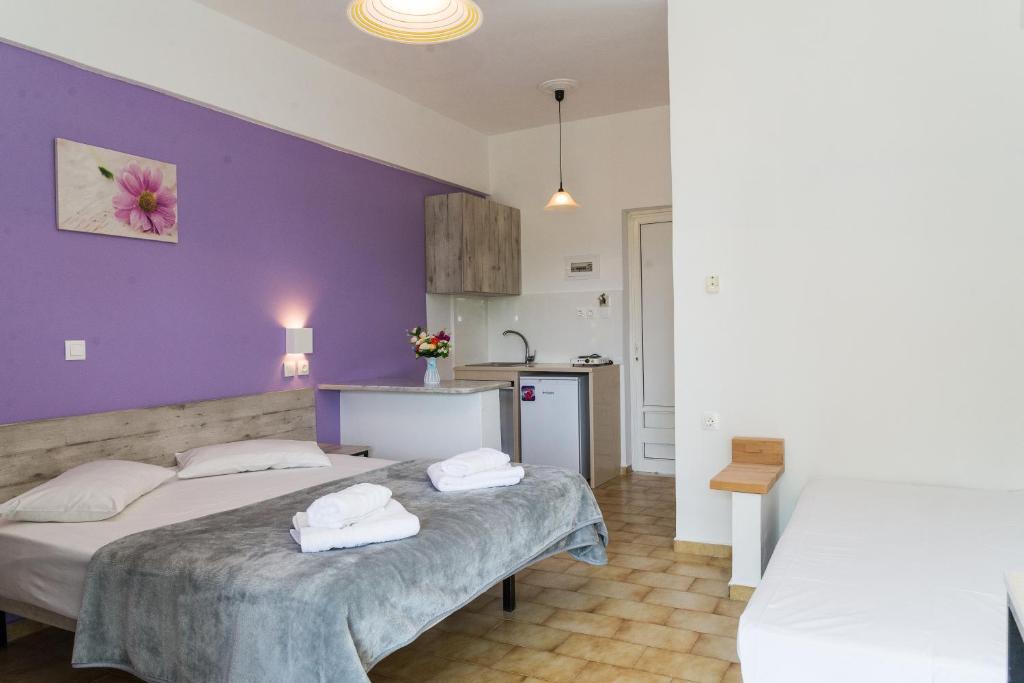 Laganas Dreams can be found all across the well-known and incredibly popular resort of Laganas in Zakynthos. There are studios for two and three persons on the properties. The rooms is consist of a kitchenette with cooking rings, utensils, silverware, and a refrigerator, as well as one double bed or two single beds (registration in advance is requested), A/C, and a TV. There is also a shower-equipped bathroom. Guests can sit on the equipped balcony and enjoy a drink. Parking and WiFi are free and available. For any taste and inclination, Laganas offers a wide range of stores, restaurants, bars, clubs, taverns, etc. All are conveniently located on foot, negating the need for a car. While everything is nearby, an autonomous vacation begins at Laganas Dreams in Zakynthos.