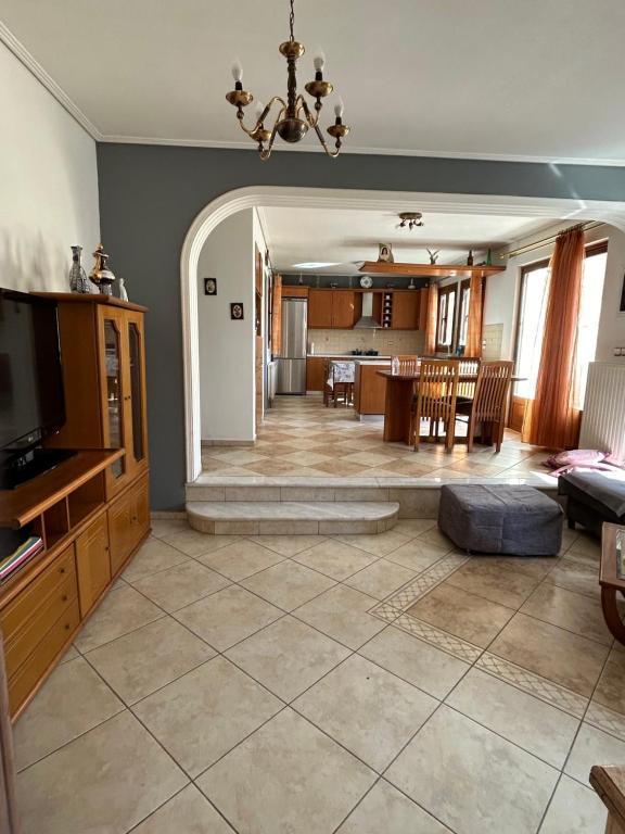 Enjoy mountain and lake views during your stay at the Ouranias House located in Marathokambos, Samos. This holiday home has three bedrooms, two bathrooms, a living room, and a fully equipped kitchen. Other facilities include TV, air conditioning, accommodations with soundproofing and a fireplace, and an outdoor dining area. Free WiFi is covered throughout, and free private parking is available. The rental property lies in Marathokambos, which is adjacent to great sandy beaches, traditional taverns, and cafés that serve delicious local food. The community has a number of events, mostly during the summer. Music and dancing bands participate in a wine festival held in Marathokambos.The accommodation offers airport transfers for your convenience. The Samos Airport is 29 km from Ouranias House.
