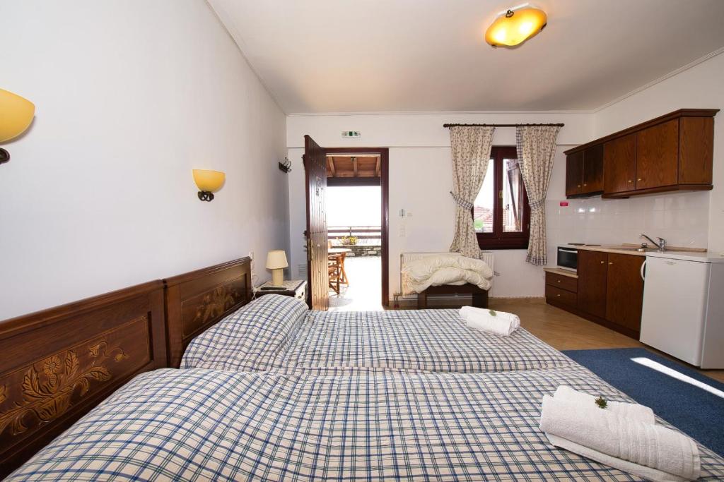Anemoessa is a traditional guesthouse located on the slopes of Mount Pelion, 150 meters from the square of Milies. This guesthouse features seven spacious maisonettes, all with a fireplace, which can accommodate from two to five people and are spread over three levels. It follows the traditional architecture of Pelion and has all modern amenities. They come with air conditioning, a TV, a fridge, a safety box, a bathroom with a hairdryer, and Wi-Fi access. All the residences have large balconies with unlimited views. Additionally, there is a cozy space with an endless view for you to enjoy your breakfast. There are things to do in Milies during your stay at Anemoessa, like visiting the Agioi Taxiarches Monastery and experiencing the traditional train of Pelion, the Moutzouris. In the past, it was used for practical reasons and made the route from Volos to Milies. Today, it operates for tourism purposes and runs the route from Ano Lechonia to Milies.
