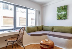 Situated on a lovely pedestrian road in Monastiraki, in the center of Athens, the Lofus Bio-Suites hotel is notable for both its architecture and philosophy. The expansive suites with earthy and green soft surfaces inside the five-story building link guests to nature while reflecting the rich legacy of Dionysian Ancient Greece. Air-conditioned apartments with a desk, coffee maker, refrigerator, safety deposit box, flat-screen TV, and private bathroom with shower will be available to visitors at the aparthotel. While some apartments have a fully furnished kitchenette with a burner, toaster, and cookware, each unit comes with a kettle. Every room at the aparthotel has towels and bed linens. The Temple of Hephaestus, Omonia Metro Station, and Monastiraki Metro Station are well-liked attractions close to Lofus Bio-Suites. The facility has a chargeable airport shuttle service, and Athens Airport is 30 kilometers away.