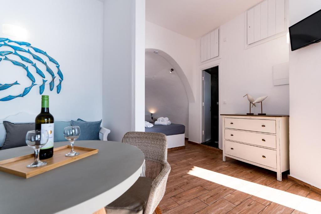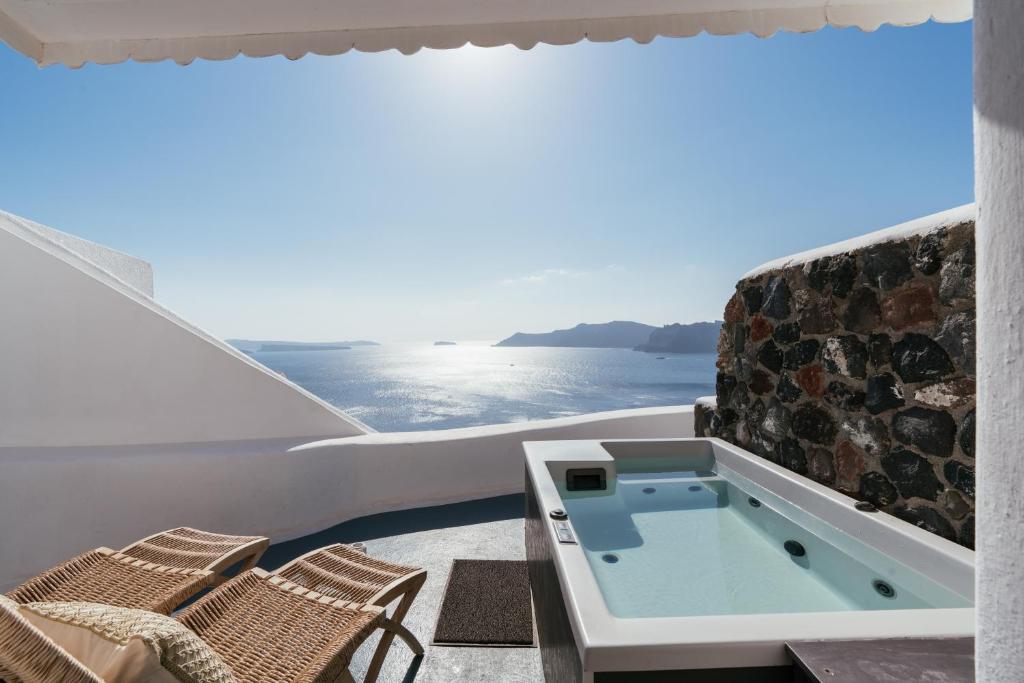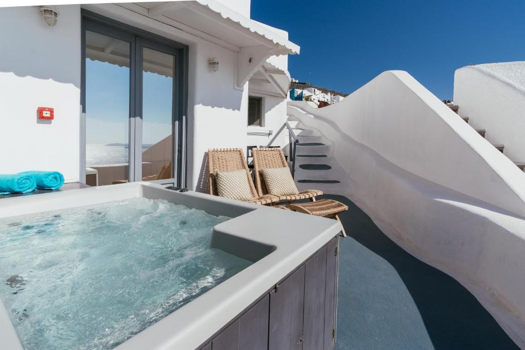 The stunning village of Oia, on the stunning Greek island of Santorini, is home to the Aspa Caves. They are made up of two caves (a studio and an apartment) that have been constructed and refurbished but have maintained their traditional shape and design while changing and evolving for visitors. The Aspa Cave consists of a private bathroom with shower, kitchenette, living room with dining area, and private balcony with jacuzzi and furniture. Furthermore, the balcony has breathtaking views over Thirasia Island, Oia Village, the volcano, and the Caldera. A bus station to Fira is located 50m from the beginning of the village, near Aspa Caves. There are also three restaurants, a cafe, two mini-markets, and other stores in the area. Santorini Airport is 15 km from the property, while the Archaeological Museum of Thera is 10 km distant.