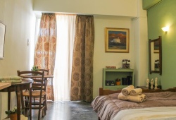 Central Guestroom is located only a ten-minute walk from the historical Olympia sights. It is pleasant and comfortable for an unforgettable holiday experience. Air conditioning, a refrigerator, a minibar, a kettle, a shower, complimentary amenities, and a wardrobe are all features of the guest room. While some rooms have a kitchen with an oven, every room has a private bathroom with a hair dryer. All of the rooms at the inn have towels and bed linens. The central guestroom balconies feature views of the city. Free WiFi and free private parking are available at the house. If you are a history buff, book a room at Central in Ancient Olympia.