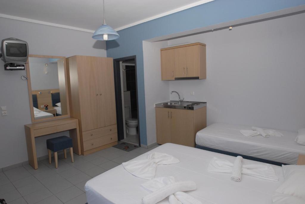Irene Rooms & Studios is located directly on the beach of Petra, a charming town on Greece's northernmost tip of the island of Lesvos. Petra town is well-known for its long sandy beach, which is among the most exquisite in the Aegean Sea, and its cathedral dedicated to the Virgin Mary, which is perched on a towering 40-meter-high rock that dominates the village center. The accommodations have been renovated, and amenities include air conditioning, a fully equipped kitchen, a fridge, a kettle, a TV, Wi-Fi, a private bathroom with a hairdryer, and free parking. Irene Rooms & Studios is well situated close to the village's shopping area, which has restaurants, cafes, a variety of shops, mini-markets, pharmacies, a doctor's office, ATMs, and more. The perfect getaway on Lesvos Island, which is directly on the sea and offers breathtaking views of Petra Bay and the islets of Ai Giorgis, Mikronisi, Glaronisi, and Mirmigi, is the perfect spot to unwind, rest, and rejuvenate for the remainder of the year.