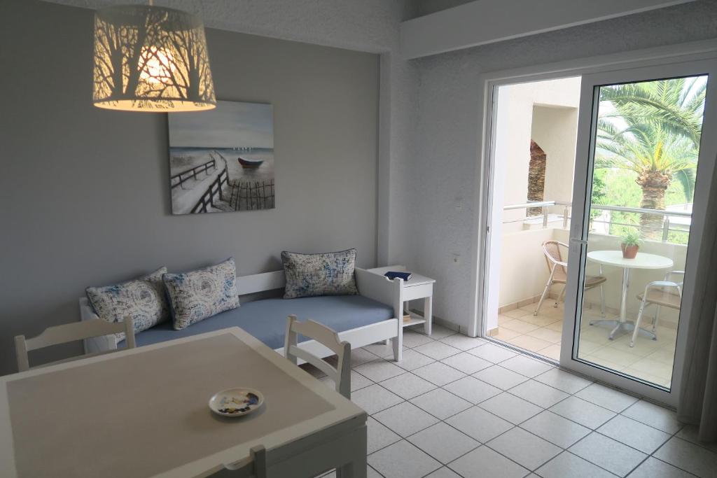 Are you trying to discover the ideal spot to unwind that is near both the busy town and the peace and quiet of the beach? The Maria Suites has a swimming pool encircled by a grove of palm trees and is only 300 meters from Platanias Beach. It is the ideal escape to picture yourself swimming in a pool surrounded by magnificent palm trees and soaking up the sun. Maria Suites feature free Wi-Fi and balconies overlooking the surrounding flora or the Cretan Sea. All are air-conditioned and have solid wood furnishings, a kitchenette with cooking stoves and a coffee maker. Each has a satellite TV and a seating space. To explore picturesque Chania Town, which is 11 km distant from Maria Suites, the staff may assist in any details regarding tours and activities on Crete. Within a three-minute' walk are stores, bars, and Cretan restaurants.