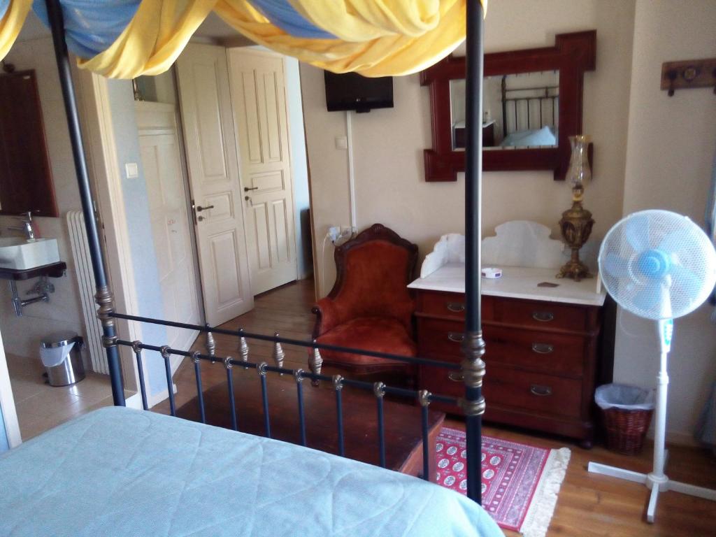 The warmth of the locals makes your stay in Portaria village of Pelion, particularly if you decide to stay at Archontiko Pantos, an experience you will never forget. Offering the peace and quiet of the countryside and the opportunity to appreciate the splendor of nature, it is the perfect place to visit in any season. The guest house's main structure has six twin-bedded rooms, a suite that can sleep up to four people, a reception space, and a living room that doubles as a breakfast room. Each room has a television, a mini-fridge, a phone with an Internet connection, and a hydro massager for your comfort. You can keep your car at the guest house's parking lot, which is extremely secure because it is inside the building and its door is shut at night. If you are planning a trip to Pelion, Archontiko Pantou is your best choice. It is roughly 12 km from Volos and 13 km from the ski resort. Combing mountain and sea offers beautiful views of Pagasitikos Gulf from its 650-meter elevation in Portaria.