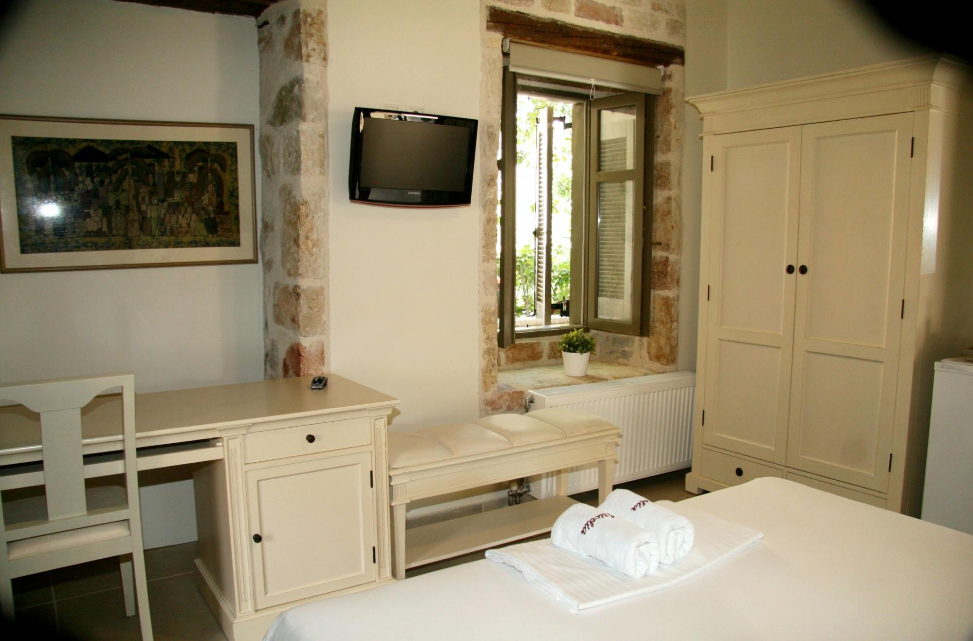 The Alicelia Boutique Inn is located in Vathy, the main port of Ithaca, in a newly refurbished Venetian building. To give you the most tranquil vacations, the location blends the picturesque setting of the Homeric Poems with the typical Boutique design. The guest house's amenities and services are available to both visitors and business travelers. They come with air conditioning, heating, desk, television, fridge, bathroom with hairdryer, safety box, coffee machine and wifi in all areas. There is parking available for your own or rental car. Stroll around Vathy where you will find a variety of shops, restaurants, and bars for your entertainment. Alicelia Boutique Inn will please you a warm and unforgettable stay for your vacation in Ithaca, whether you decide to remain in the chic rooms for the atmosphere or you want to travel and experience Ithaca from a different angle.
