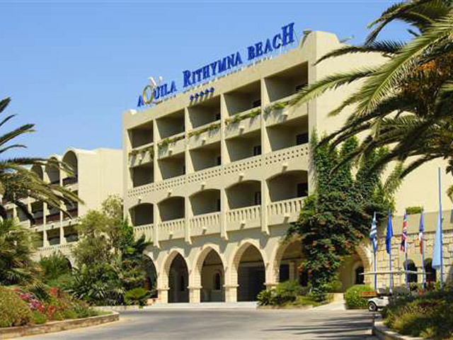 The three freshwater pools, private beach, and two restaurants of Aquila Porto Rethymno are situated on the sandy beach of Rethymnon, just a short stroll from the Old Town. Yoga sessions and massages are among the recreational and sporting options available at the hotel complex. The earthy colors and floor to ceiling windows of Aquila's rooms offer a balcony with views of the village or the Cretan Sea. Standard rooms are equipped with satellite TV & integrated music channel, direct dial telephone, bathrobe & slippers, beach towels, pillow selection, hairdryer, light Mini Bar (at an extra charge), a safe, and manually operated air conditioning. Bungalow suites are equipped with satellite TV & integrated music channel, Mini Hi-Fi, DVD player, tea/coffee making facilities, direct dial telephone, safe, Mini bar (at extra charge) and manually controlled air conditioning.