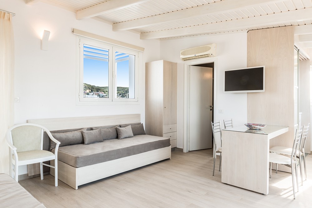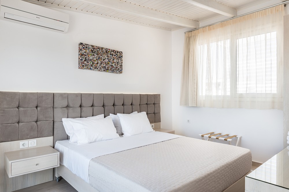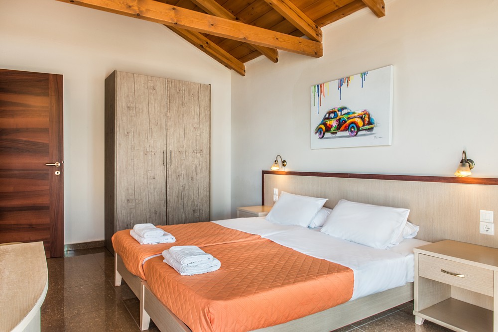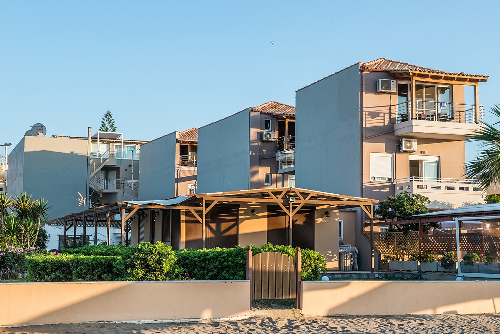 Situated in the serene town of Agia Marina, on the long, sandy, and sun-kissed beach, the Vergina Beach Hotel is about 9 km from the center of Chania. This 4-story building on the seafront houses a total of 18 accommodation units. The attractively furnished flats, suites, and apartments in Vergina include a private balcony and are simplistic in design. They have a flat-screen TV and a kitchenette with a tiny fridge and electric kettle. Enjoy the swimming pool by the beach and a plunge-spa pool with waterfall.