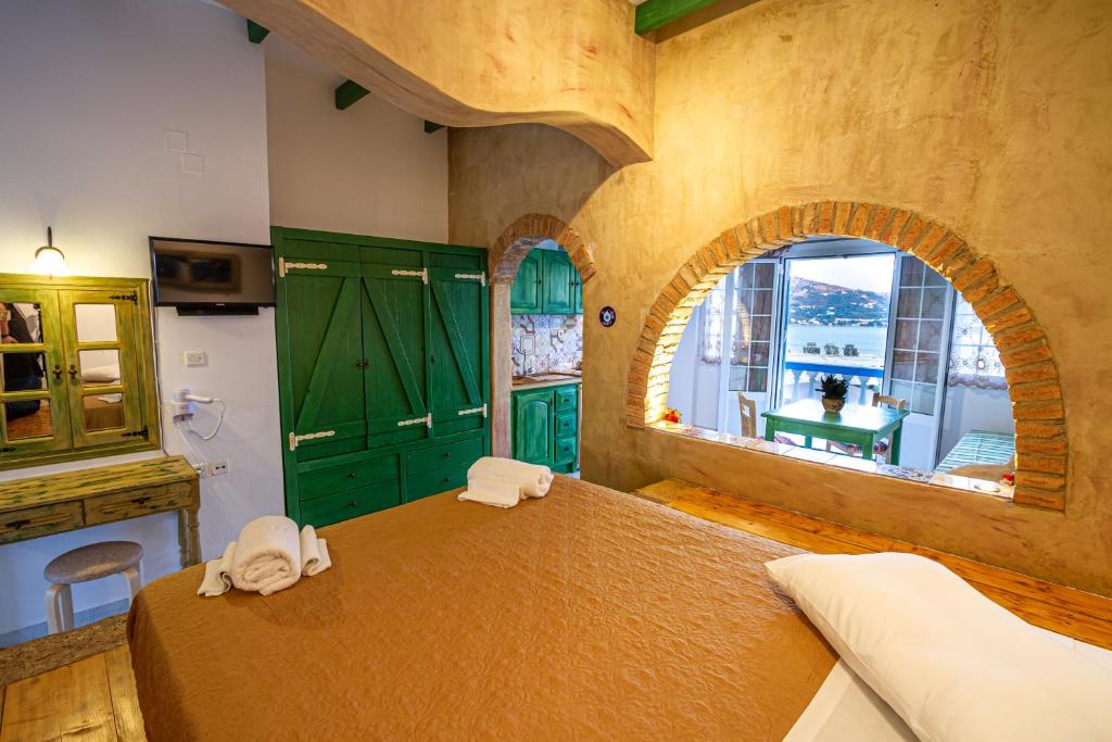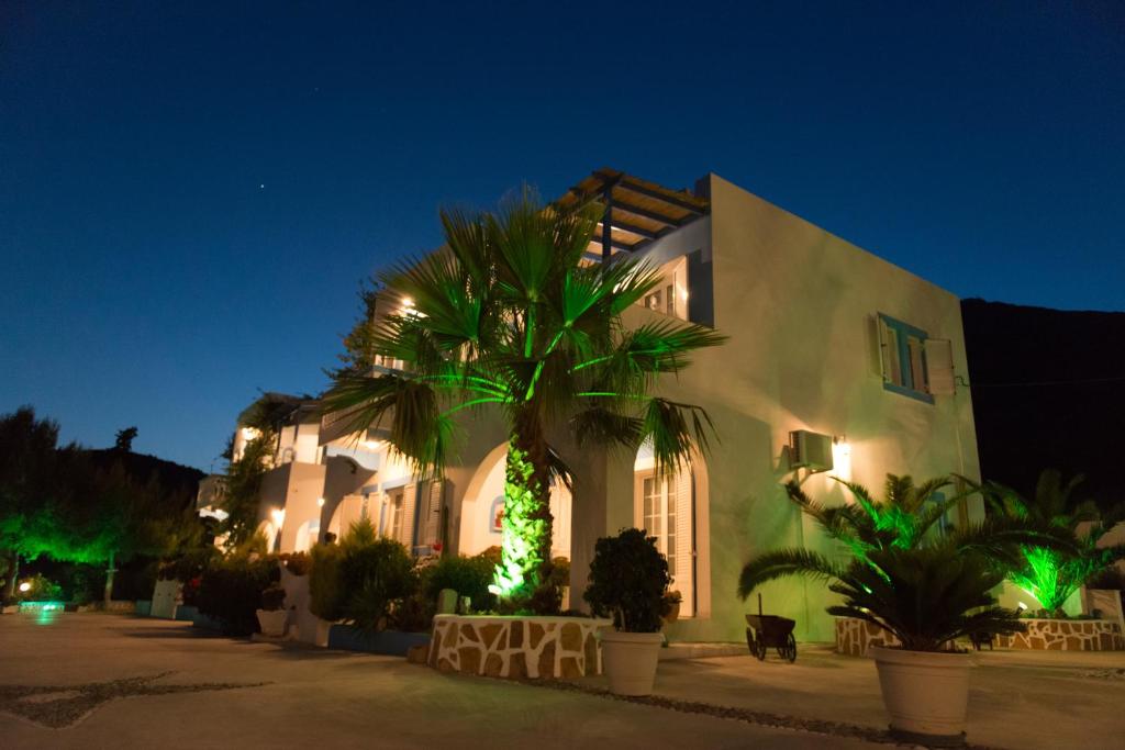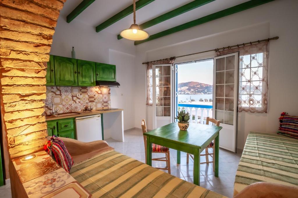 The traditionally constructed Elpiniki in Alinda of Leros is only 300m from the beach and has a properly maintained garden. Family rooms with views of the garden, the sea, or the mountains are available at this hotel. Every room has a private bathroom, a kitchenette, a balcony, and air conditioning. Free WiFi, a garden, a bar, and a sun terrace are all available to visitors. Additionally, there is a parking spot for your car. The Leros Museum and Leros Castle are attractions, both close to the Elpiniki hotel.