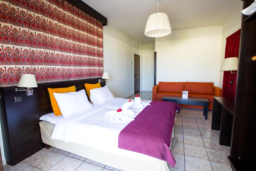 here are 115 comfortable rooms, most of them with an exceptional sea view and many with a balcony. The air-conditioned rooms at Langley Resort include stylish furnishings and plenty natural light. In addition to a small fridge and complimentary amenities and hair dryers, each room has an en suite bathroom. Lunch is offered à la carte, with an extensive selection of wines and beers to go with it. Dinner is made in front of you with Greek and Cretan influences with flavors that may be eaten on the outside patio.