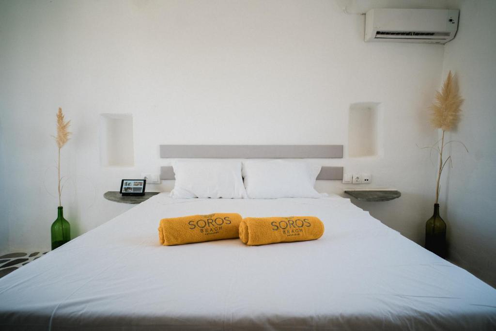 Making a reservation is the first step in any travel, so book a room at the Soros Beach in Antiparos. In the middle of a sandy beach with clear waves on Agios Georgios, there is a coastal complex with a restaurant, a beach area, and suites. Just a few meters from the accommodation, the fully furnished beach area offers free umbrelas and loungers to guests staying in rooms. In addition to enjoy breakfast, snacks, contemporary Greek and Mediterranean cuisine, fresh seafood and sushi at the restaurant. The bar also serves drinks, wine and delectable creative cocktails. Additionally, room service is offered. The town of Agios Georgios is located 10 minutes' drive from Soros Beach, and 9 km south of Chora or Antiparos Town. Located in the heart of Cyclades, discover the magic of Soros Beach Hotel in Antiparos today!