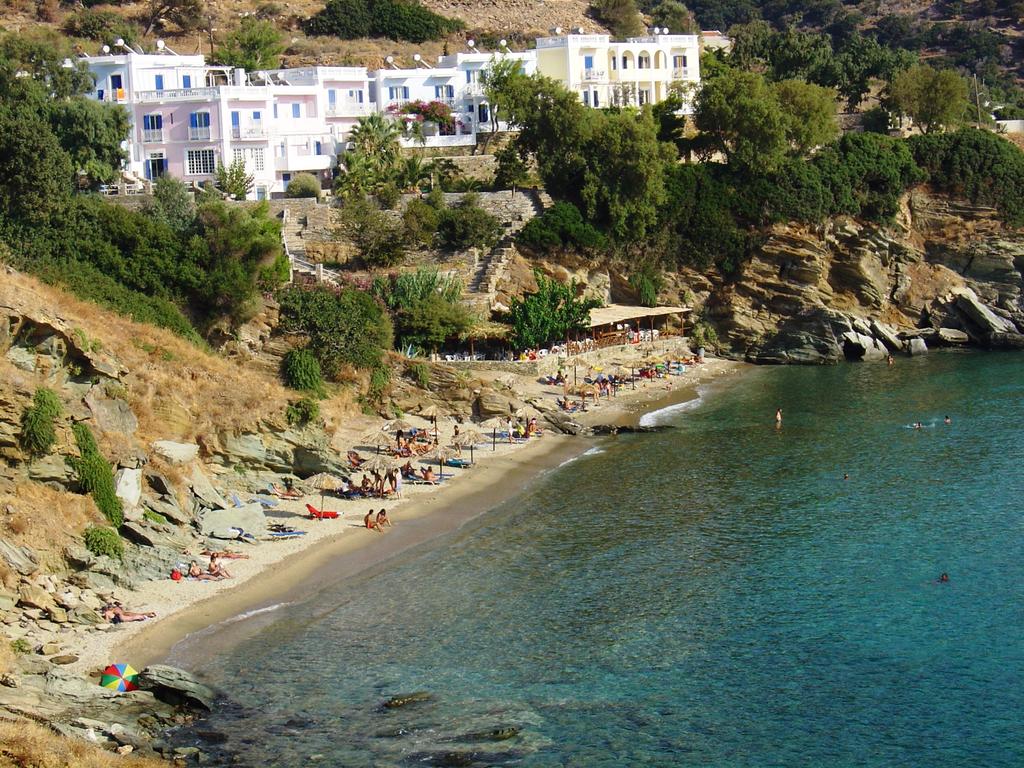 Located between the pristine sandy beaches of Ag. Marina and Delavogia, the Aneroussa Beach Hotel is a well-known 3-star resort with a stellar reputation in the area. Batsi, the island's attractive and amphitheatrically constructed tourist village, is about 800 meters away. Beautiful Batsi lies around 6 kilometers from the Gavrio harbor and 30 kilometers from the center of Andros Town.