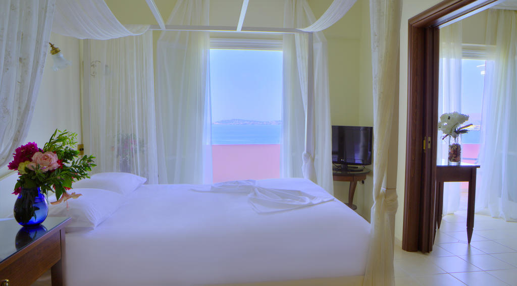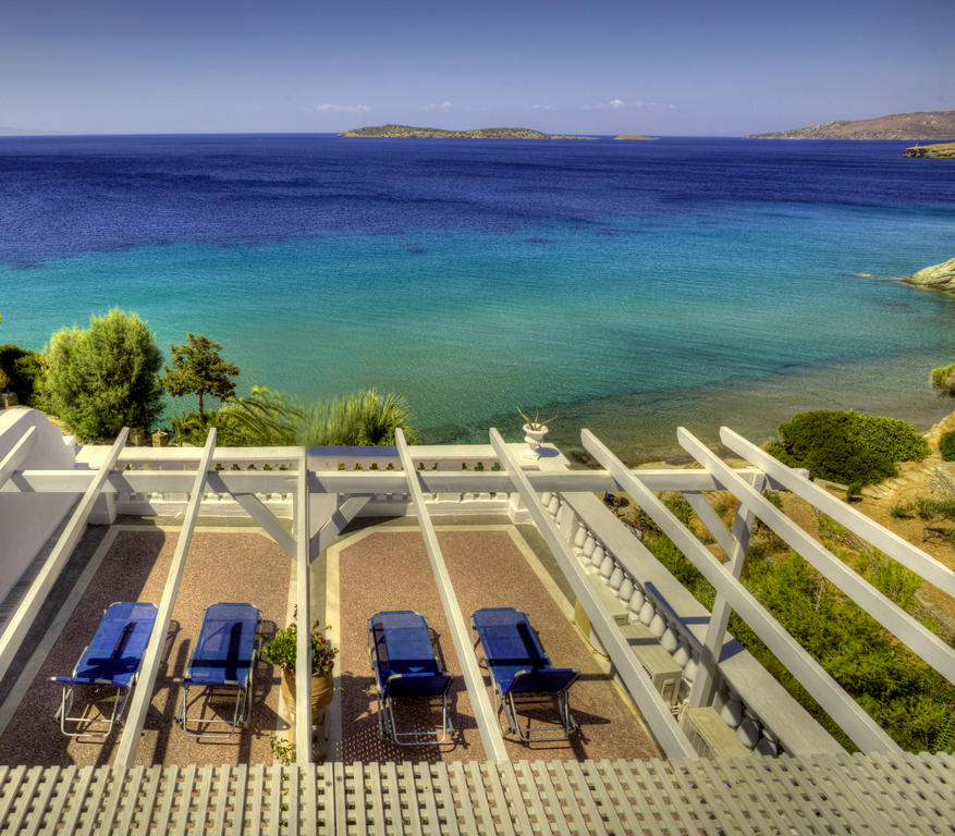 The exquisite rooms of the Andros hotel have large balconies and verandas with breathtaking views of the sea, all expertly built with great attention to detail. They have air conditioning, a minibar, free Wi-Fi, a kettle, slippers, beach towels, bathroom robes, an LG TV, an international direct dial phone, a hairdryer, and a safe. They offer free amenities and an en suite bathroom with a shower. Visitors may take in the stunning views of the surrounding landscape and the Aegean Sea from the private verandas of each accommodation. At Aneroussa hotel, you may visit the bar to relax on the veranda and enjoy cold drinks and cocktails.