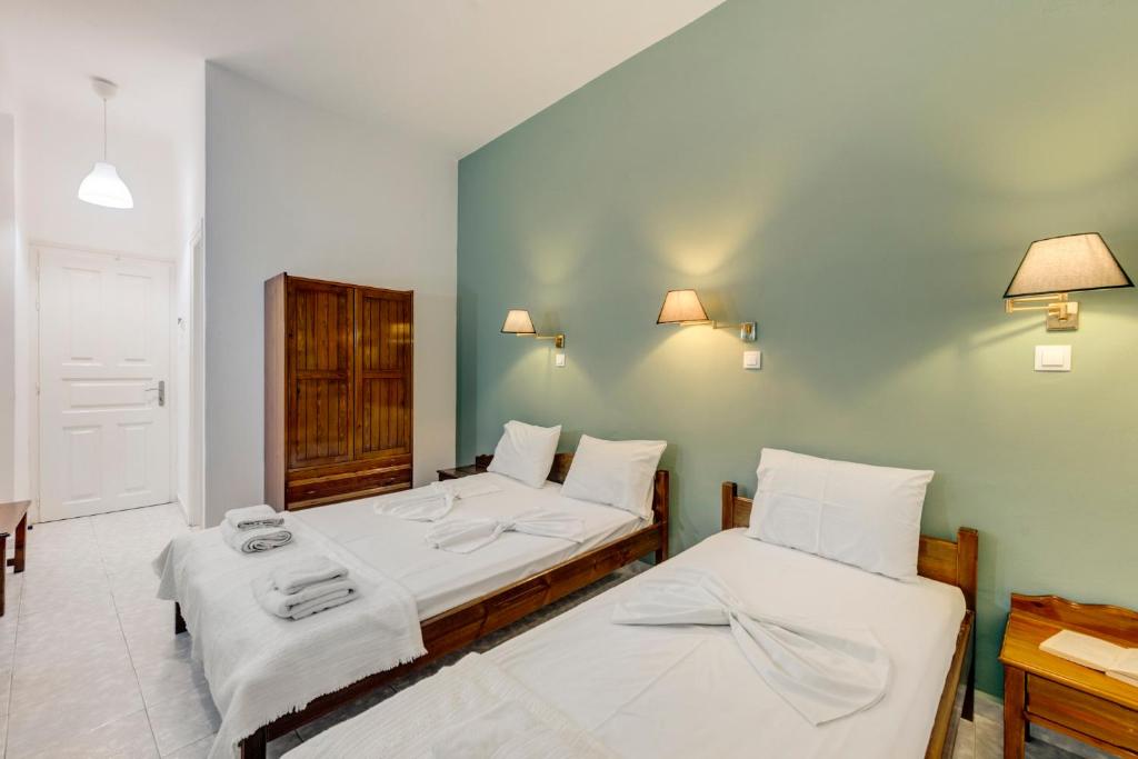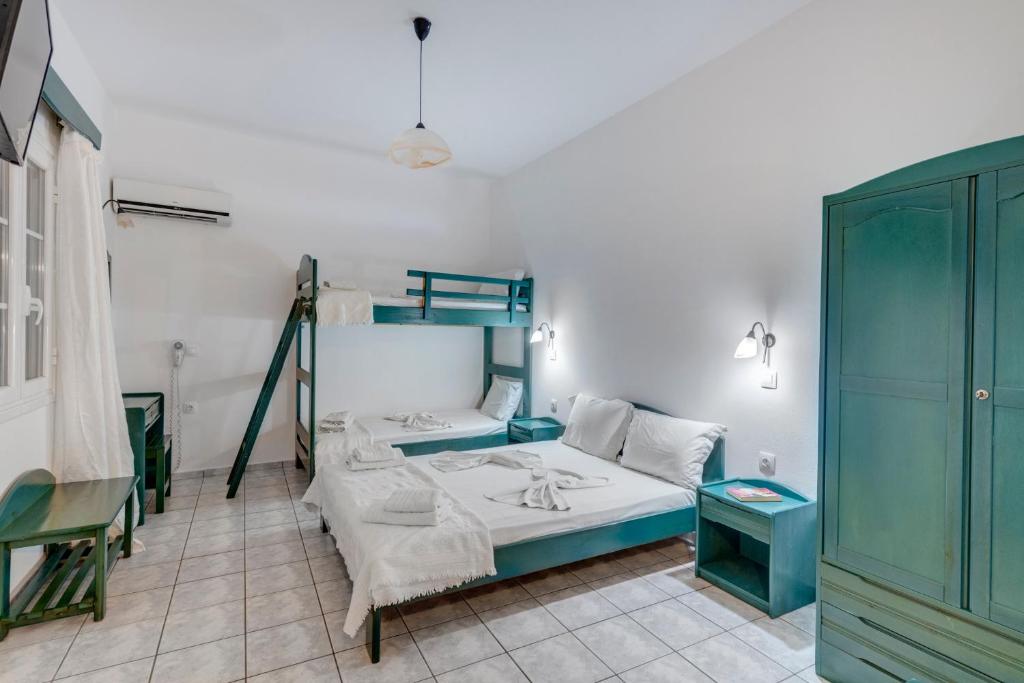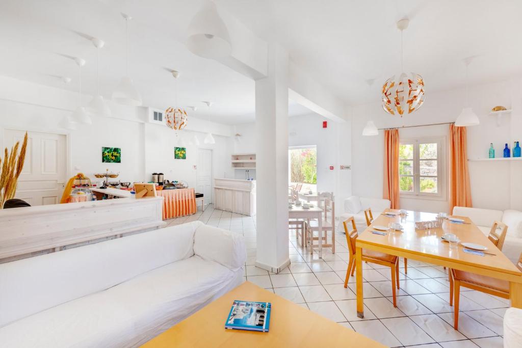 The Blue Sea Hotel is located at the seaside village of Galissas, 7 km from Ermoupolis, the capital of Syros Island. All rooms are renovated and spacious for a pleasant stay. Amenities include air-conditioning, private bathrooms with a hairdryer, a mini fridge, a TV, a balcony, and Wifi. A buffet breakfast is every morning for you to start the day. The chapels of Agios Mamas and Agios Kyrikos, the enormous cave of Agios Stefanos with the water springs, the small harbor with the charming stone pier, and the church of Agia Pakou are all worth seeing while you're in the area. The Sacred Heart of Jesus Christ, a Catholic Church, is the main church of Galissas. Syros International Airport is 8 km away from the Blue Sea Hotel.