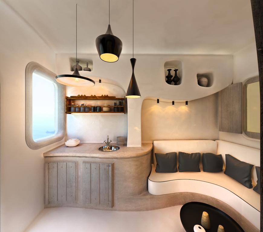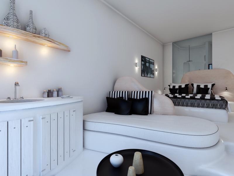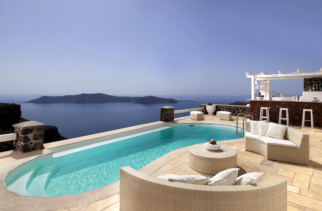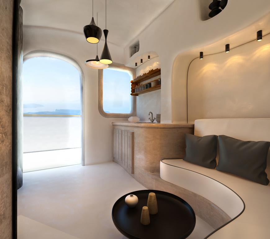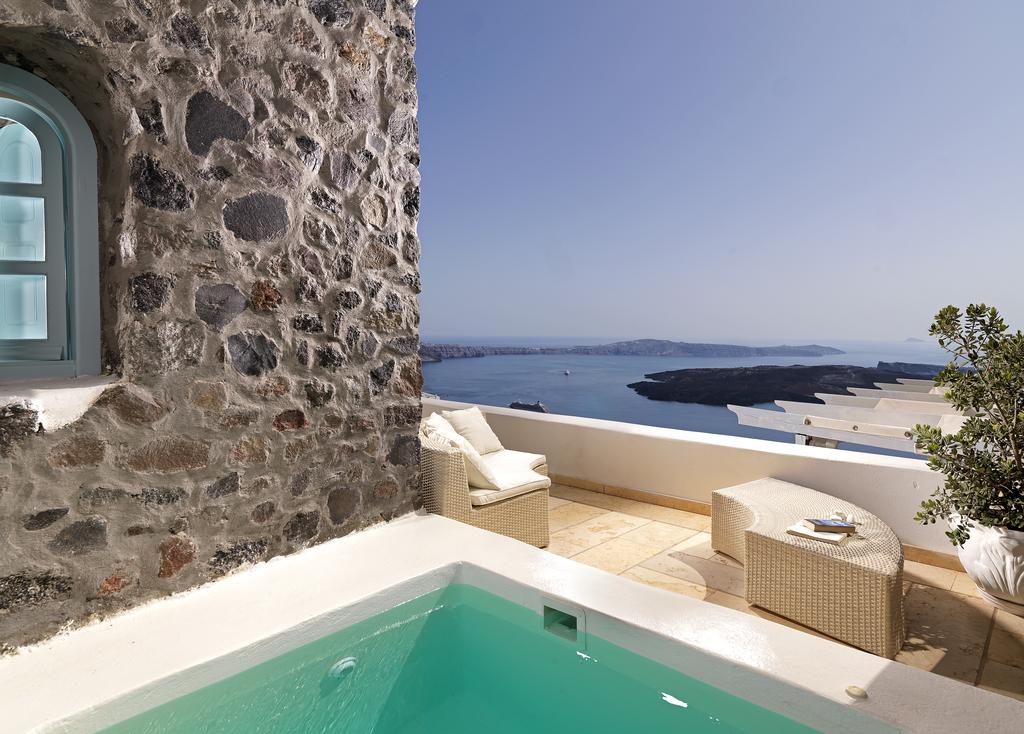 The whitewashed apartments and studios, all in the traditional Cycladic style, are built on different levels of the cliff, with terraces or balconies facing the superb surroundings. In their discreetly luxurious interiors, you’ll find comfort and relaxation. Some suites have an indoor jacuzzi but all have balconies with a seating area overlooking the famous Volcano and the Endless Blue Aegean Sea. Breakfast is served daily at the restaurant along with lunch and dinner. Relax yourself at the pool and bar for free time. Treat yourself duting your stay at Tholos hotel with massage treatments or even a hair cut in your room.