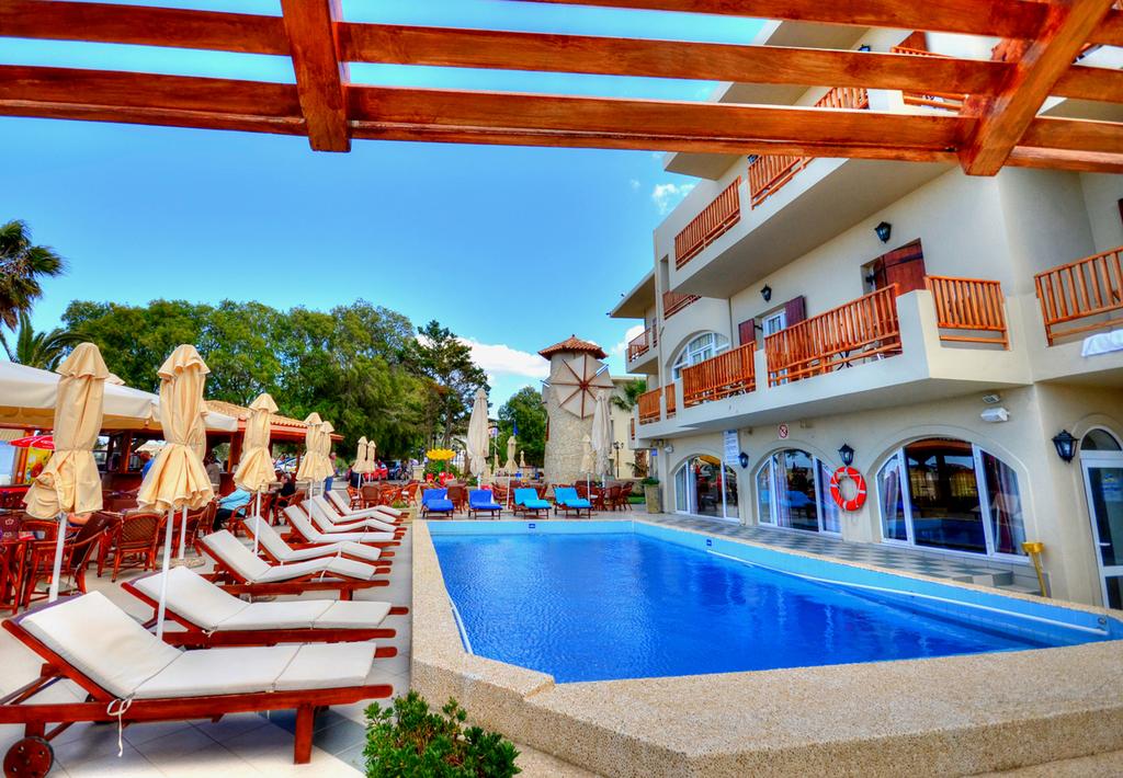 The Kalyves Beach Hotel provides contemporary, roomy accommodations with superb views of the mountains, sea, or river. Air conditioning, a refrigerator, a hairdryer, and a satellite TV are provided in the rooms. Safety boxes can be purchased for an additional fee. The hotel's breakfast restaurant and the veranda, which is right next to the waterfront, both feature an American breakfast buffet. The ideal evening would include a romantic candlelit meal and a bottle of wine from Kalyves Beach's wine selection. If you'd rather have a casual meal or drink, the pool bar and beach bar are great places to have coffee, lunch, or other refreshments. if you are looking for the ideal accomomdation in Chania, Kalyves Beach Hotel is your best choice. Click the Book Now! button and compare rates offered by various online booking services.