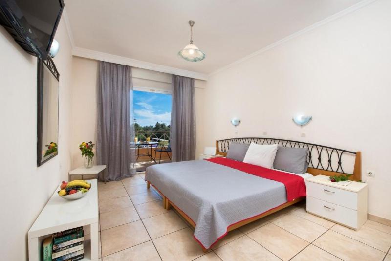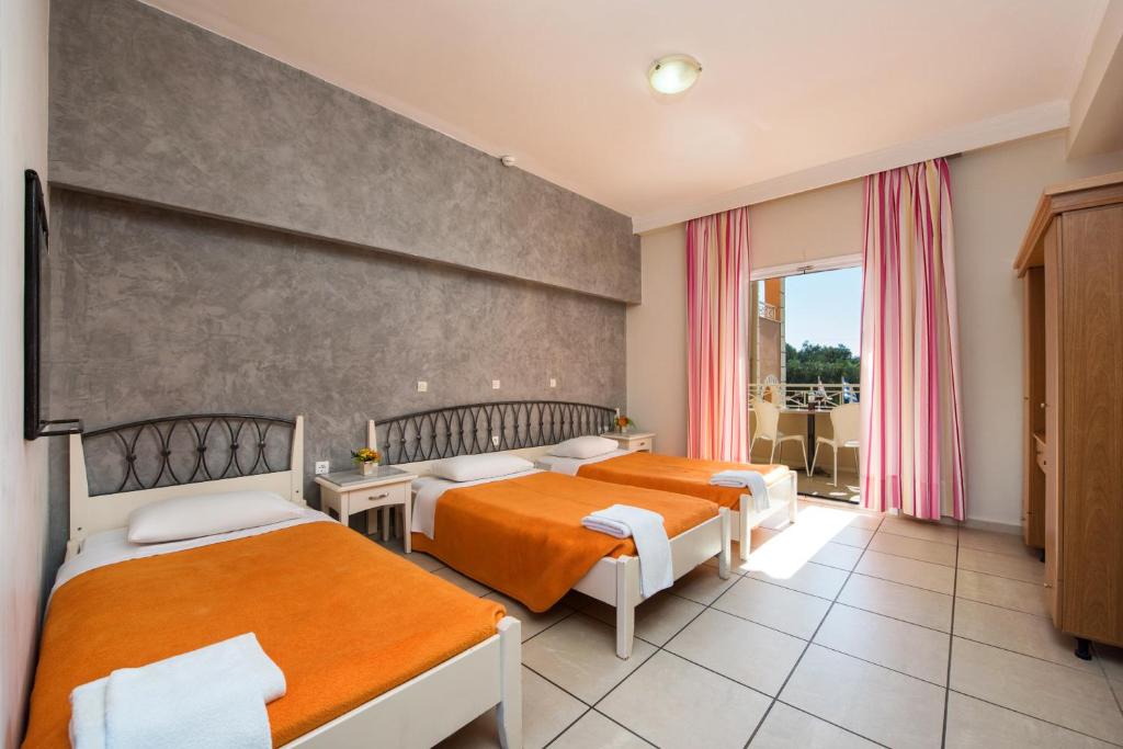 Ideally situated to enjoy everything the area has to offer, the Kavos Plaza Hotel is nestled at the end of the bustling seaside village of Kavos. It's only a 5-minute walk from the center of Corfu island's most popular nightlife district to the quiet, 3km stretch of sandy beach. Every room has enough space and comfort, complete with a private bathroom including a shower, a furnished balcony with a pool view, and convenient amenities. Unwind in the warm and inviting Kavos Plaza rooms, cool down in the pool, and get kind, attentive service—the ideal combination of comfort and convenience. Included room facilities in all rooms are individually controlled A/C, TV 32’’ with satellite, refrigerator, safe box, hair-dryer and complimentary WiFi.