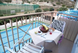The Hotel Athinoula is located in a quiet area of Kefalos, one road above the main one, but all the facilities are easily accessible on foot. It is 500 meters from the resort center and 150 meters from the beach. Numerous restaurants, tavernas, and bars are close by. The rooms are neat and come with air conditioning, a refrigerator, a coffee machine, a bathroom with a hairdryer, a telephone, and a balcony. Visitors can enjoy a sun deck, a verdant garden, and a swimming pool with a view. The hotel has a coffee shop, a bar, and a Greek restaurant that is suitable for families. Free Wifi is available in all areas; there is free parking for your vehicle. The Athinoula hotel is situated 12 kilometers from Kos International Airport, close to places like Agios Stefanos Beach (1 km) and Kamari Beach (2 km), and just a short stroll from Paralia Kefalos Beach.