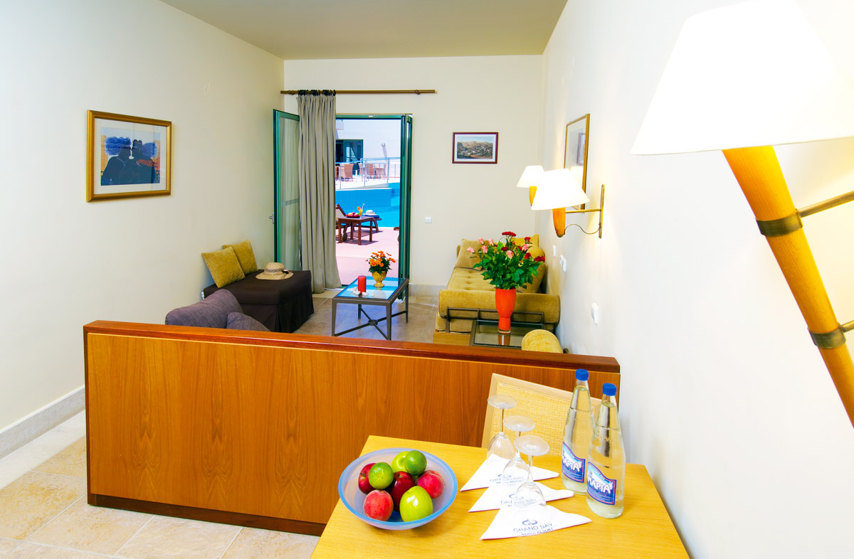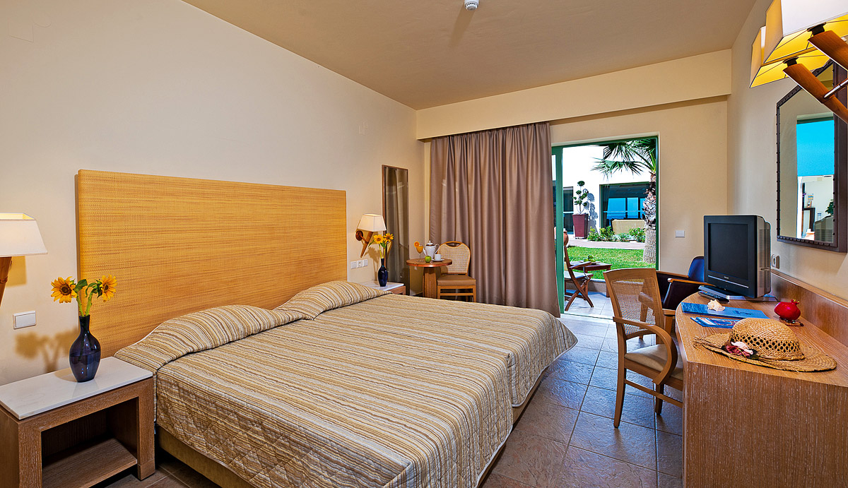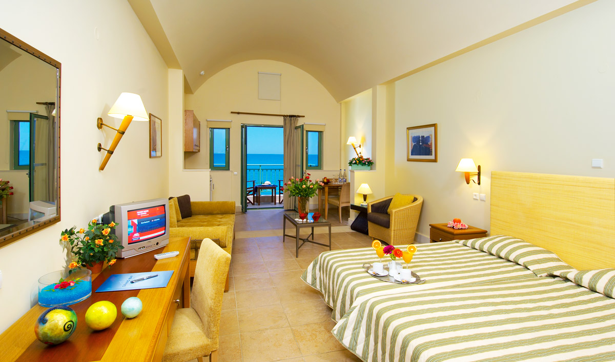 The resort has seventy-five spacious, well furnished rooms and suites with minibars and satellite TV. Every apartment has a balcony with views of the sea or the garden. Every day there's Greek breakfast offered in the dining area. Visitors can eat in the hotel restaurant or at the snack bar. They may have a drink, coffee, or snacks in the main bar and the bar beside the swimming pool.