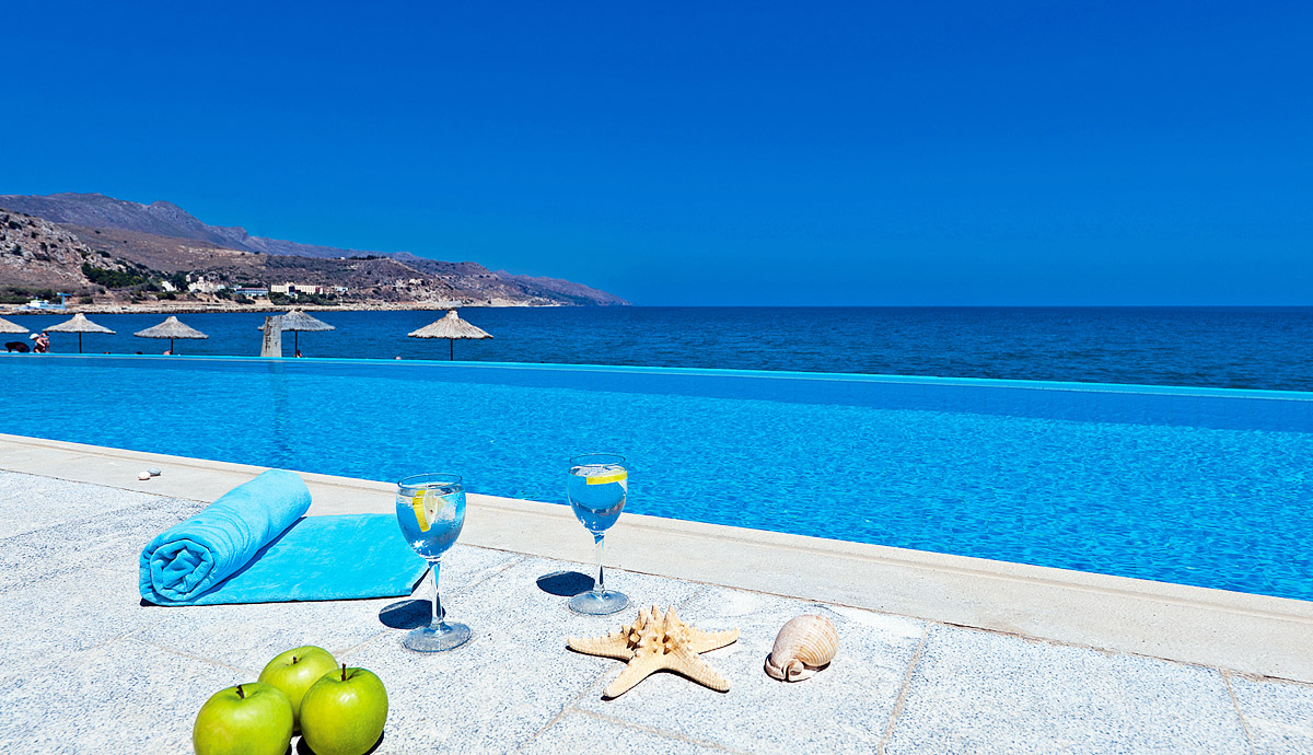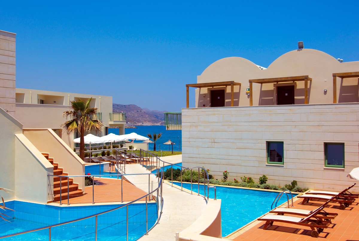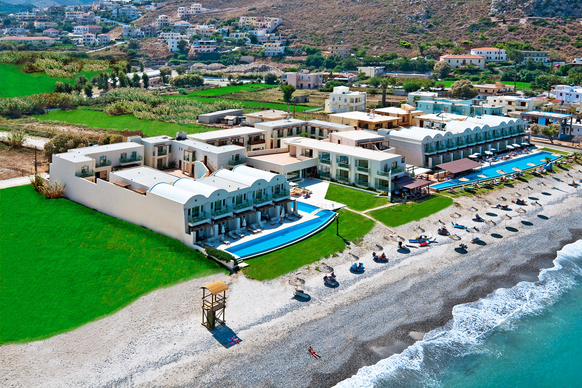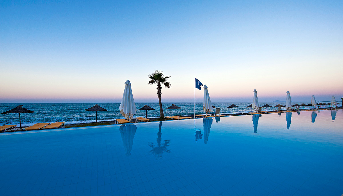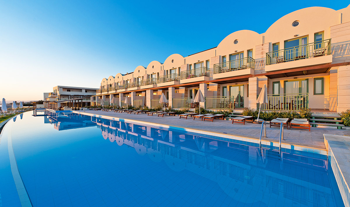 Grand Bay Beach Resort, an adult-only hotel, is located on the beach of Kolympari, a 2-minute drive from the village of Kolymπari, 23 kilometres west of Chania centre. Operating as a seaside resort that is "Adults Exclusive" (minimum age of guests is 16 years old), it provides a luxurious, child-free environment with specially designed amenities for singles and couples in a completely tranquil setting that is intended to pamper body, soul, and spirit in upgraded surroundings with impeccable service.