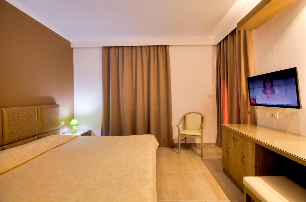 The three-star Alexandra Beach Hotel is well located in a serene area next to a shingle and sandy beach close to the vibrant Kos Town. Every guest room has a balcony with views of the garden and pool, and all have air conditioning. Every one of them has a TV and complimentary WiFi. There are kitchenettes with fridges and kettles in some apartments. Visitors to Alexandra Beach may begin their day with a breakfast buffet and then savor their favorite poolside snacks later in the day.
