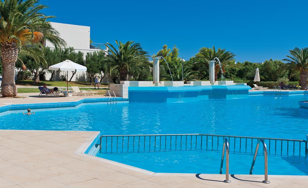 The hotel's beautifully landscaped garden has a playground, and the main pool has a kid's area. The animation crew at the Almyra will amuse the younger guests. The hotel restaurant specializes on Mediterranean, Asian, and Cretan food and provides breakfast, lunch, and supper. The beach bar and pool bar serve a range of drinks, including nibbles and cocktails, all day long.