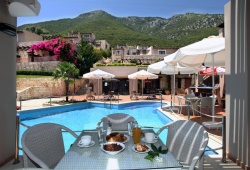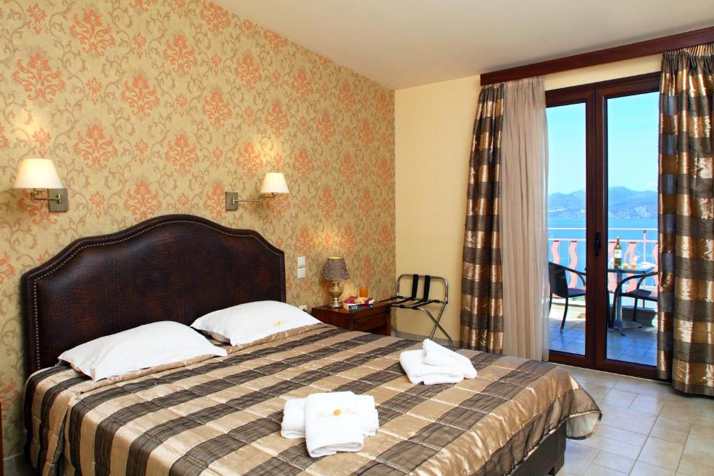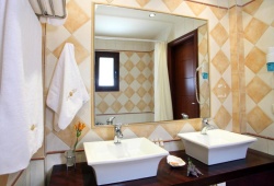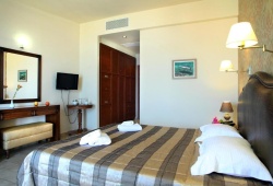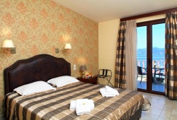 The Hotel Tesoro on Lefkada Island in Nikiana has thirty-five (35) rooms spread among six (6) bungalows, each with its own door, garden, balcony, or veranda. The bungalows are designed in an amphitheatrical style around the group's central pool. It features a family room, a bungalow suite, a triple room, four bedrooms, and a double room. Every air-conditioned room at Tesoro is tastefully designed and has a minibar, LCD TV, WiFi, and a safe. The private bathroom has a bathtub and a hair dryer and is stocked with complimentary toiletries. Visitors can take a refreshing drink at the bar or dine at the on-site restaurant. Enjoy the swimming pool for relaxing moments. Hotel Tesoro is 1 km from the beach, the seaside village of Nydri is 4 km away, and Lefkada Town can be reached in 7 km.